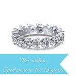 Un design luminoso e senza tempo, impreziosito da una fila continua di pietre tagliate a cuore che catturano la luce da ogni angolazione. Realizzato in argento 925 e rifinito con placcatura in rodio , questo anello mantiene nel tempo la sua lucentezza e resiste all'ossidazione, garantendo un'eleganza e durata.