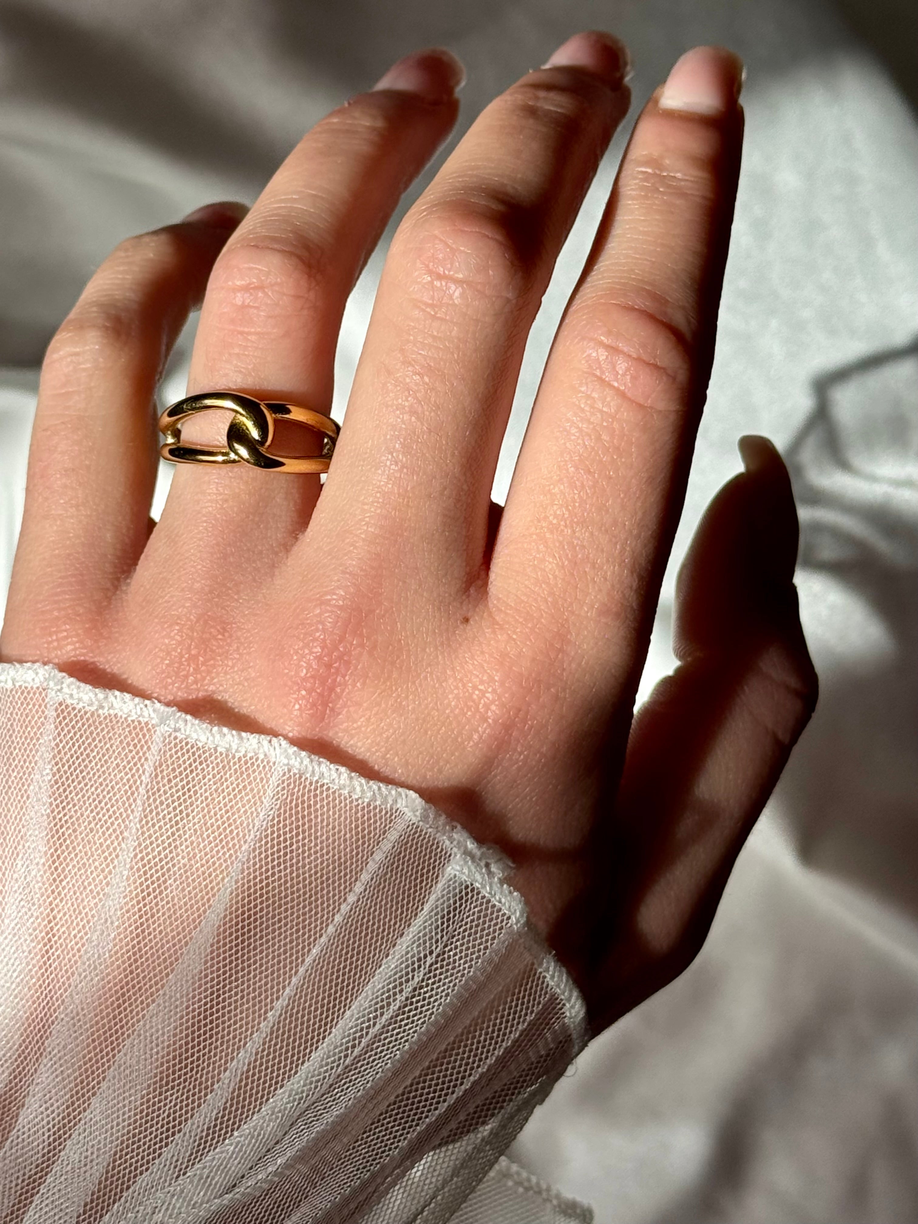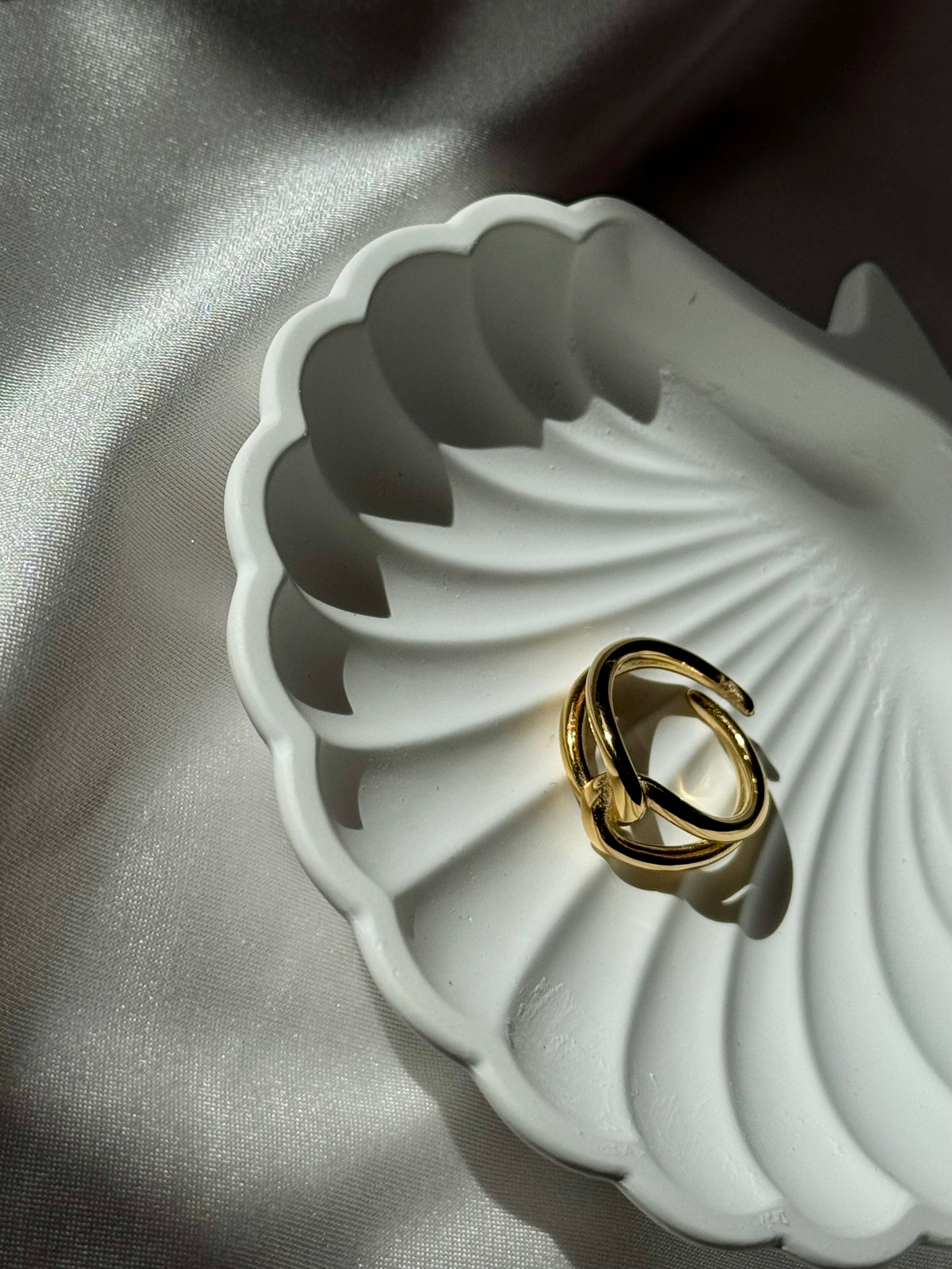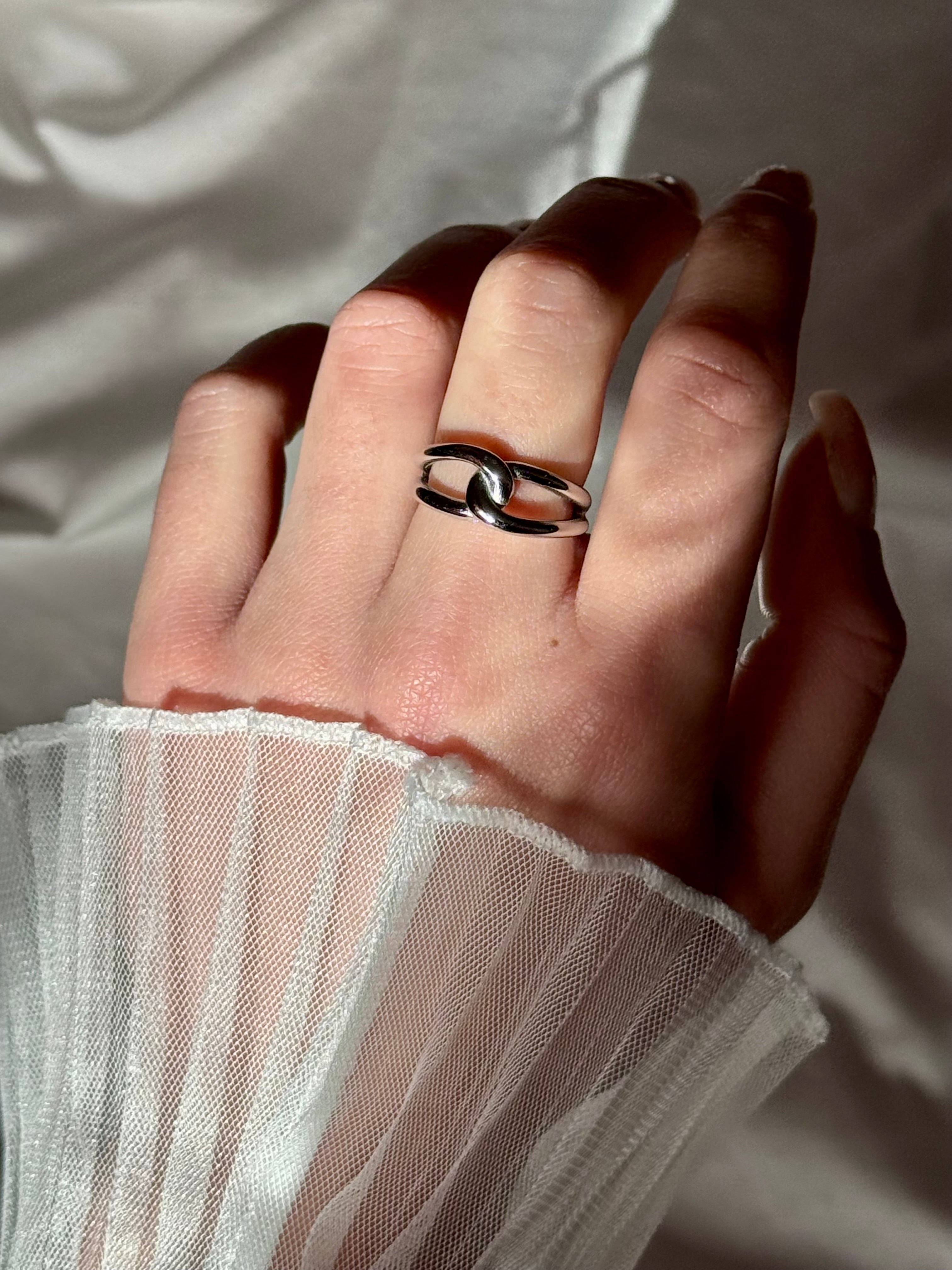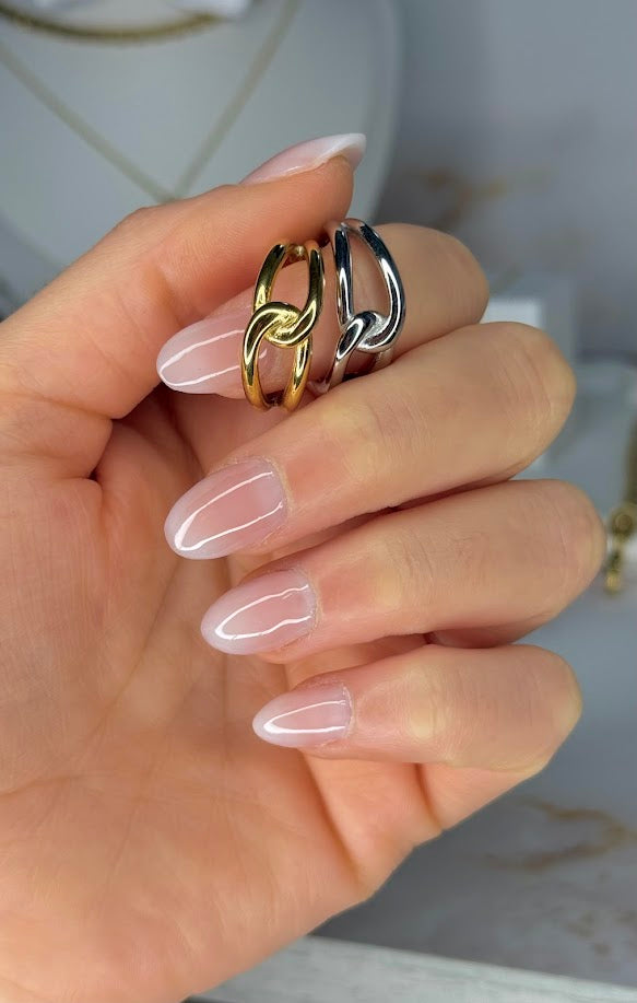 L'anello Daisy presenta un design minimalista e moderno, caratterizzato da una struttura a doppia fascia che si intreccia in un motivo elegante e fluido. Disponibile nelle finiture dorata e argentata, ha una superficie liscia e lucida che crea un effetto di brillantezza sofisticato, ideale per aggiungere un tocco di eleganza a qualsiasi outfit.