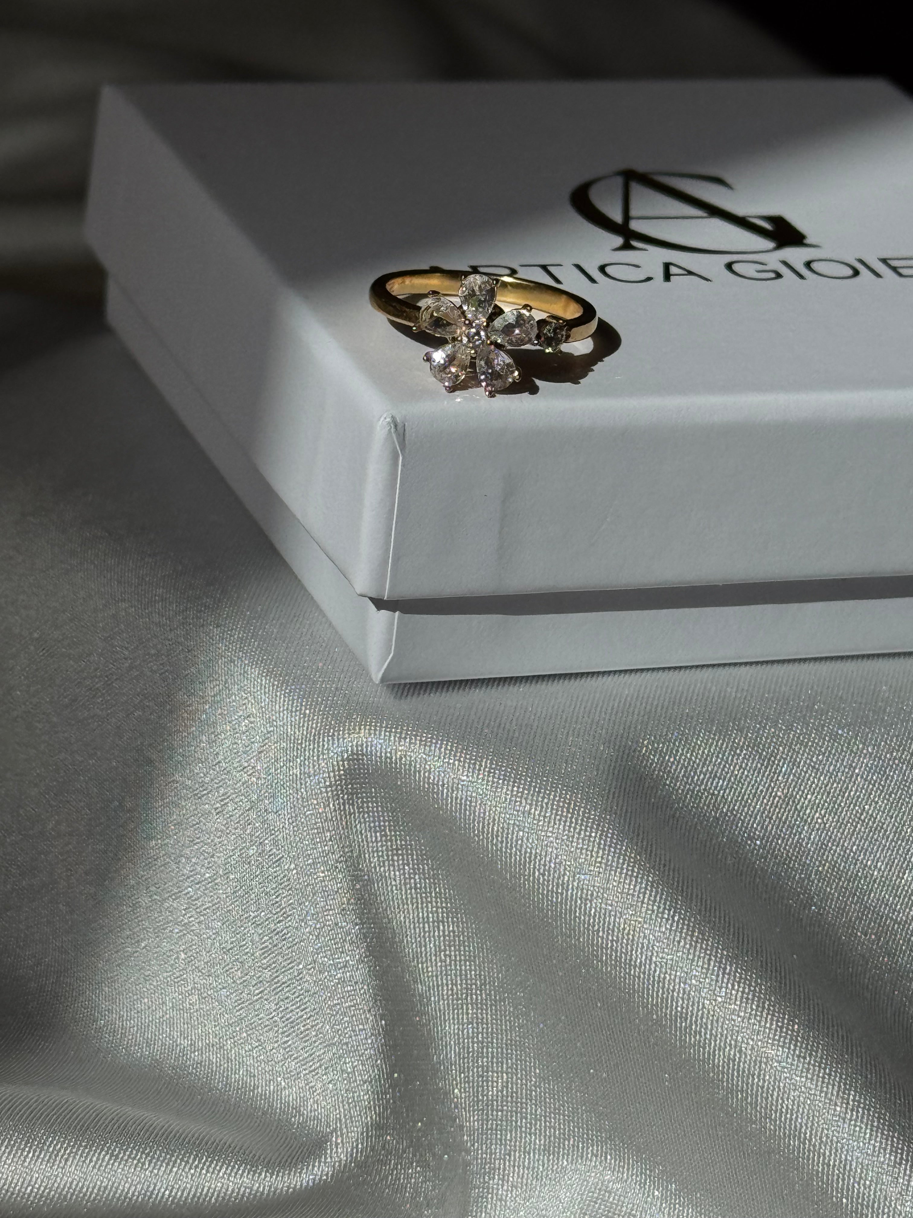 L'anello Flower è un gioiello unico e innovativo, con un design a forma di fiore scintillante realizzato con zirconia, che dona una brillantezza straordinaria. Il fiore ha la particolarità di essere mobile, permettendo di girarlo delicatamente, una caratteristica antistress che rende l’anello ancora più speciale e interattivo. Ogni petalo è impreziosito da zirconi che catturano la luce da ogni angolazione, creando un effetto elegante e raffinato.