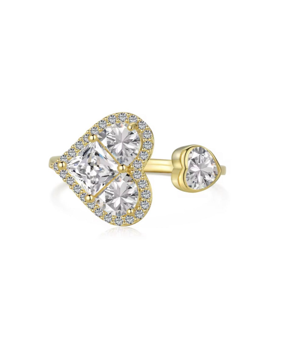 L'anello Love regolabile dal design romantico e luminoso, impreziosito da zirconia cubica 5A taglio brillante che formano un cuore elegante. Perfetto per aggiungere un tocco di luce e raffinatezza a ogni look.