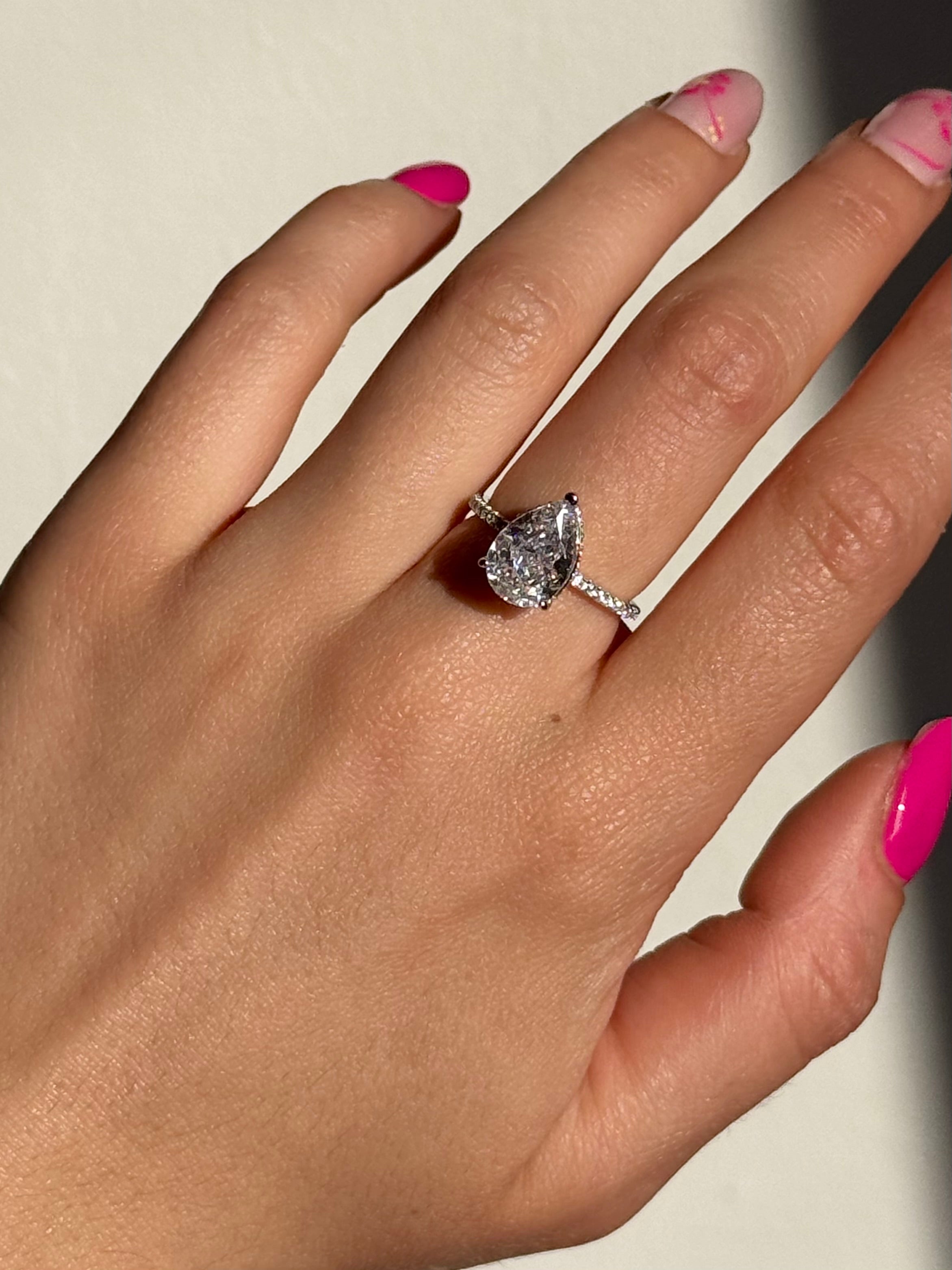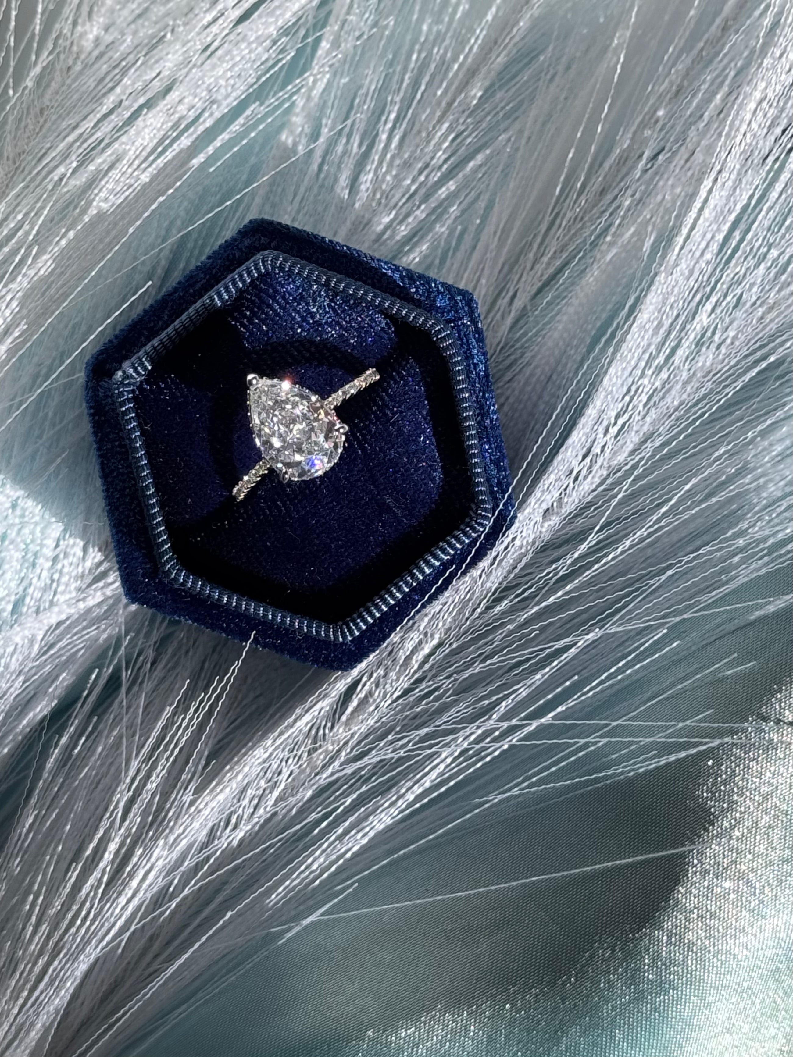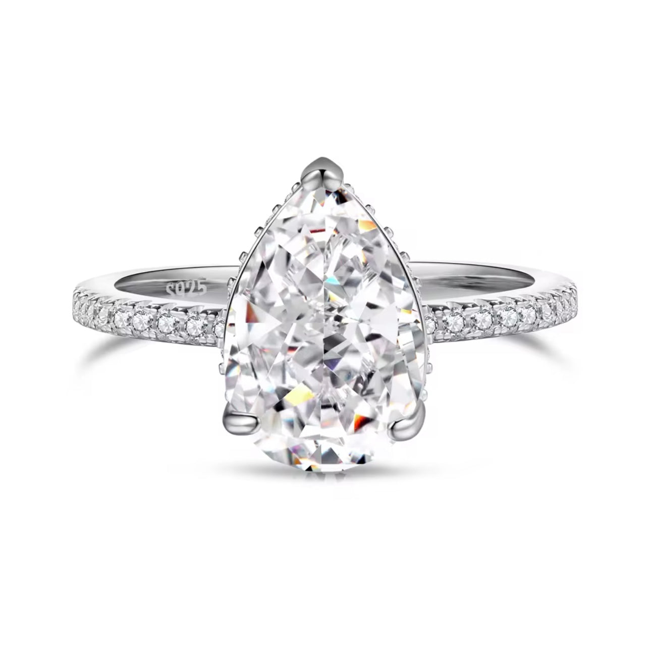 Impreziosito da una scintillante zirconia cubica 8A taglio goccia, la qualità più alta disponibile, emana una brillantezza straordinaria, visivamente indistinguibile da un diamante.