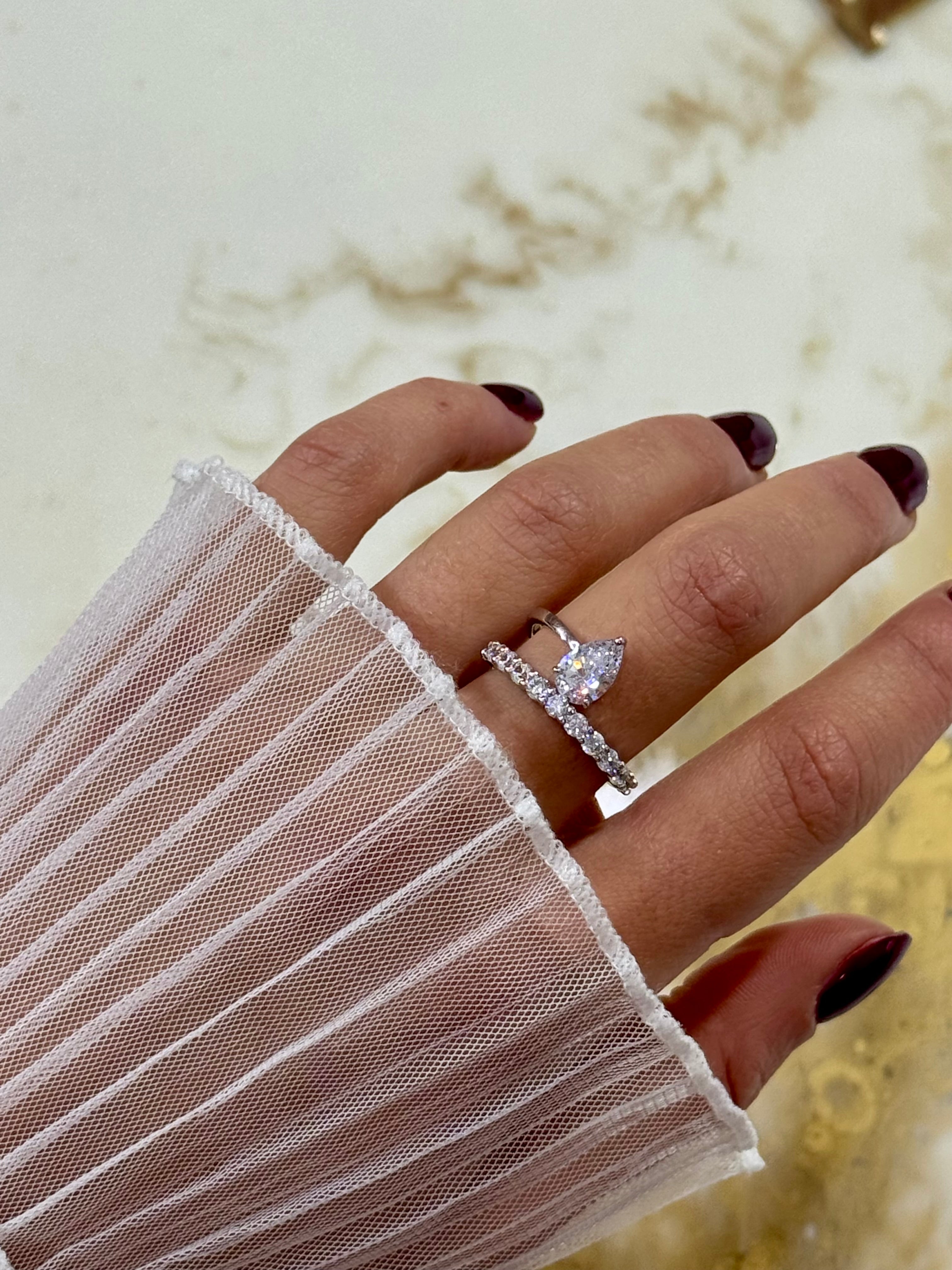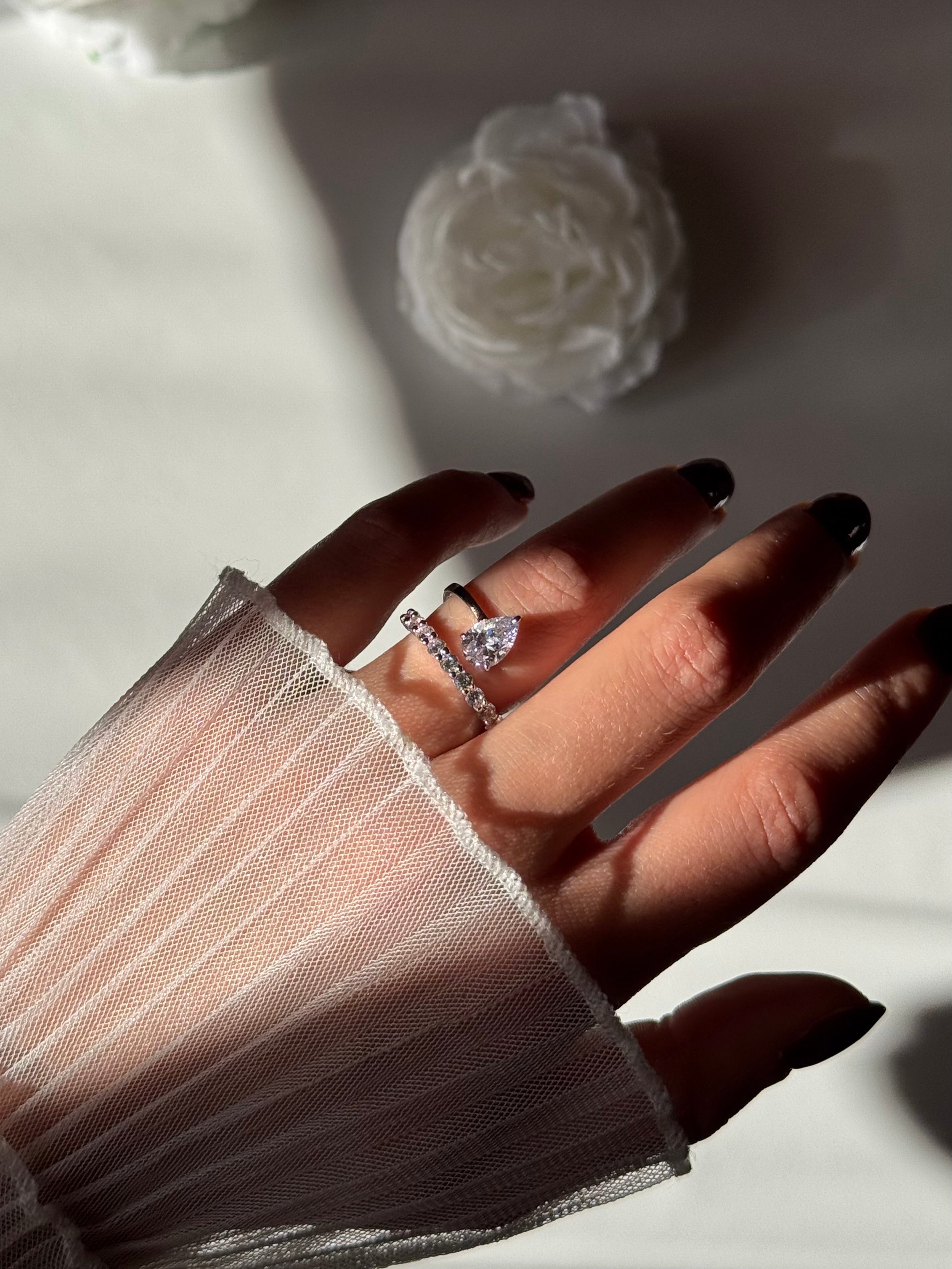 Un’eleganza senza tempo racchiusa in un design raffinato. Realizzato in argento 925, questo anello presenta una zirconia di grado 5A tagliata a goccia.