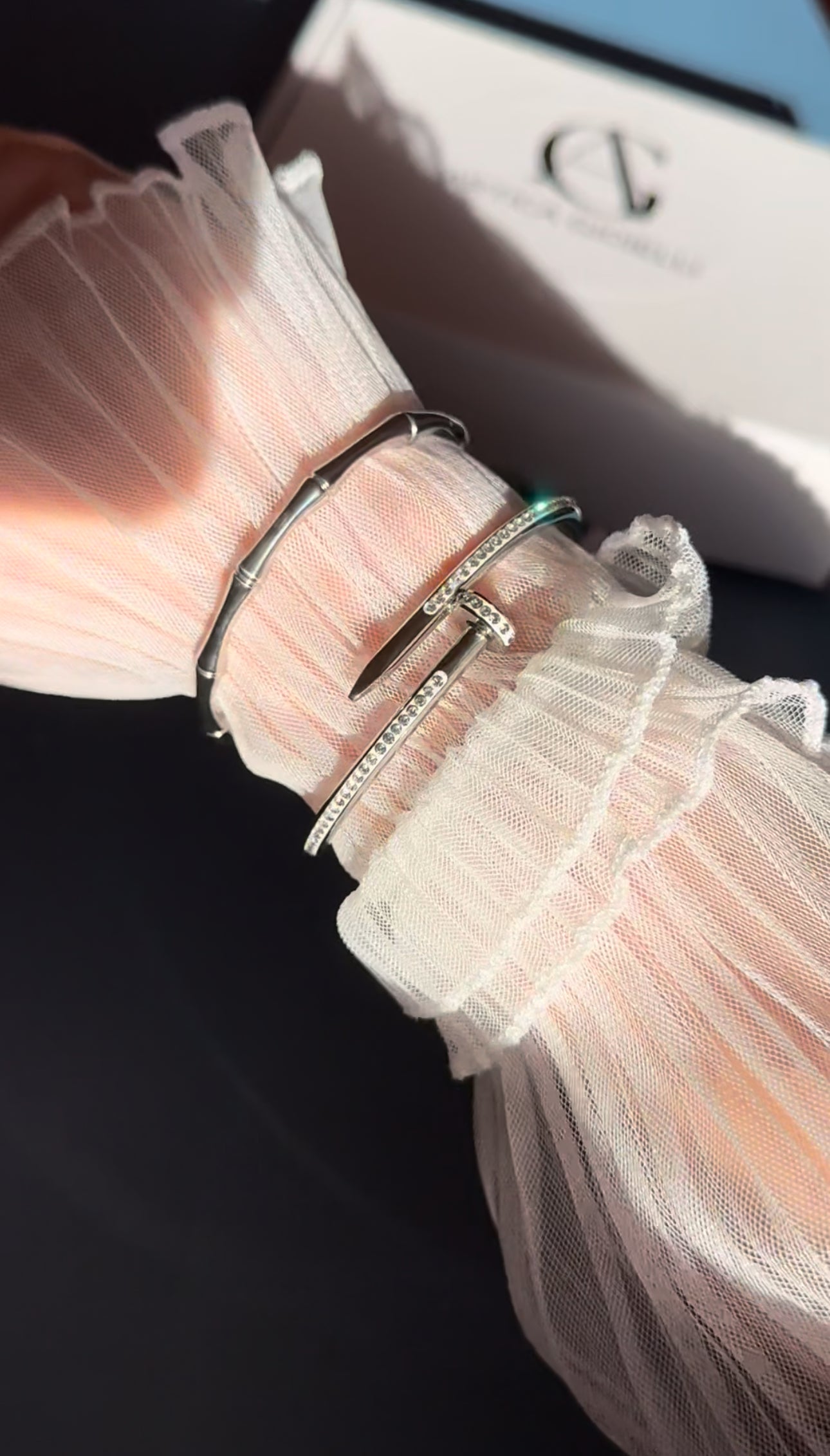 L’equilibrio tra la forma minimalista e la decorazione scintillante rende questi bracciali una scelta versatile e di classe, perfetta per chi ama gioielli che uniscono modernità e raffinatezza.