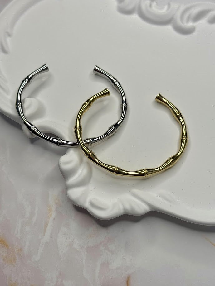 Il bracciale Serenity ha un design ispirato al bambù, con una struttura in acciaio inossidabile rifinita in due varianti: dorata e argentata. Le sezioni del bracciale sono modellate per assomigliare ai nodi del bambù, conferendo un aspetto naturale e organico ma allo stesso tempo moderno. La forma aperta lo rende facile da indossare e versatile per qualsiasi occasione, aggiungendo un tocco di eleganza e minimalismo esotico al look di chi lo indossa.