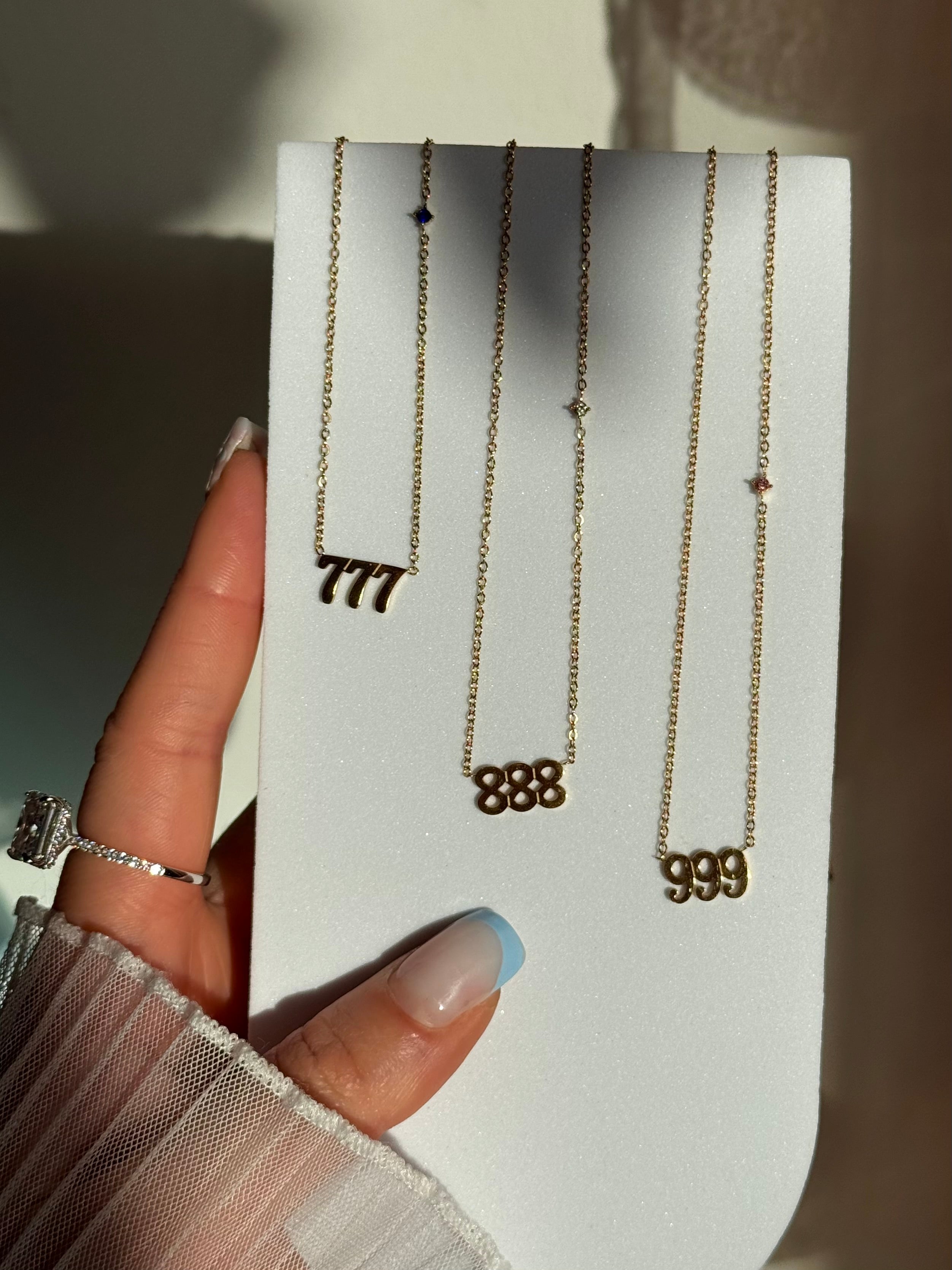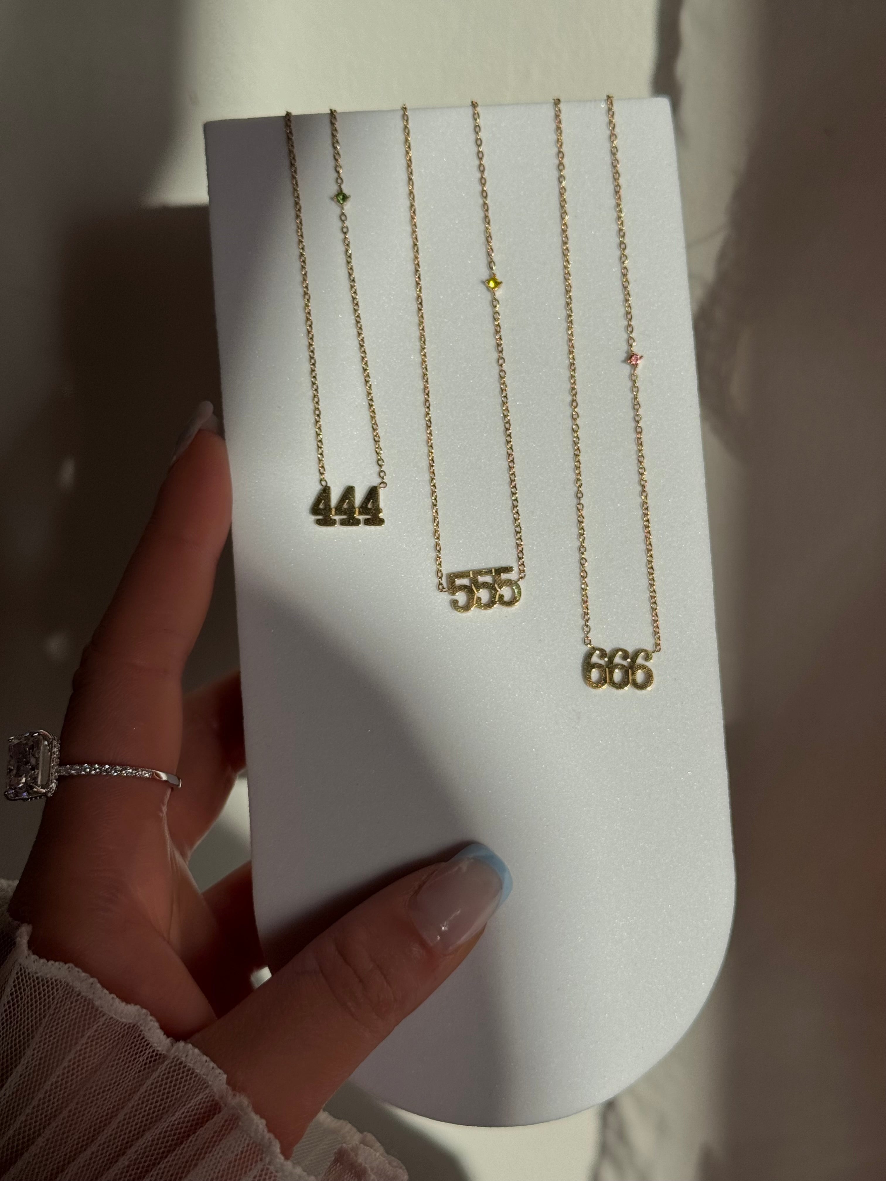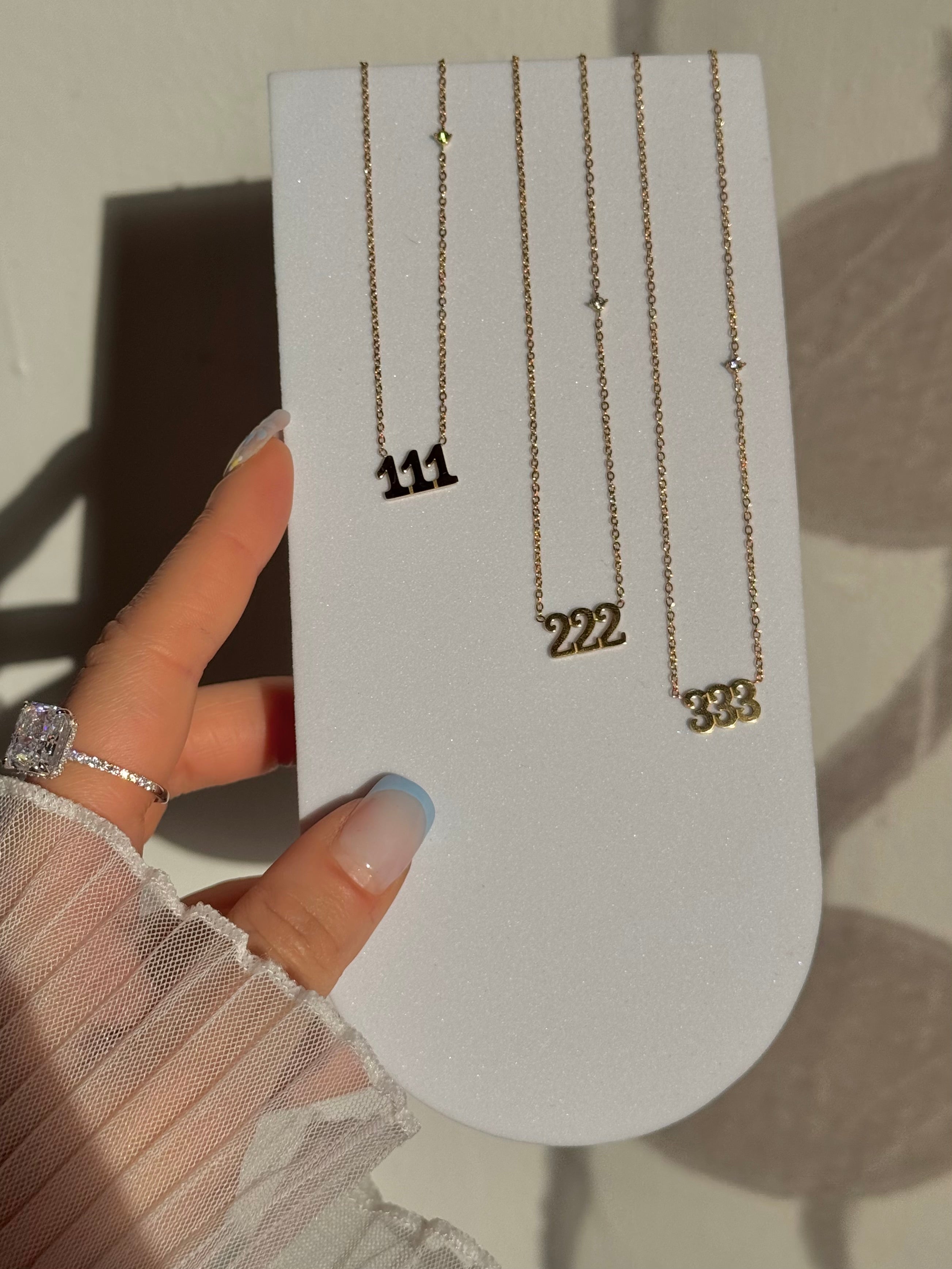 La collana Angels è realizzata in acciaio inossidabile placcato oro 18k presenta un piccolo ciondolo con numeri consecutivi come 111, 222, 333, fino a 999, impreziosito da una delicata pietra colorata posta appena sopra il numero. Un gioiello minimalista, elegante e carico di significati profondi, perfetto per chi desidera indossare un accessorio unico e simbolico.