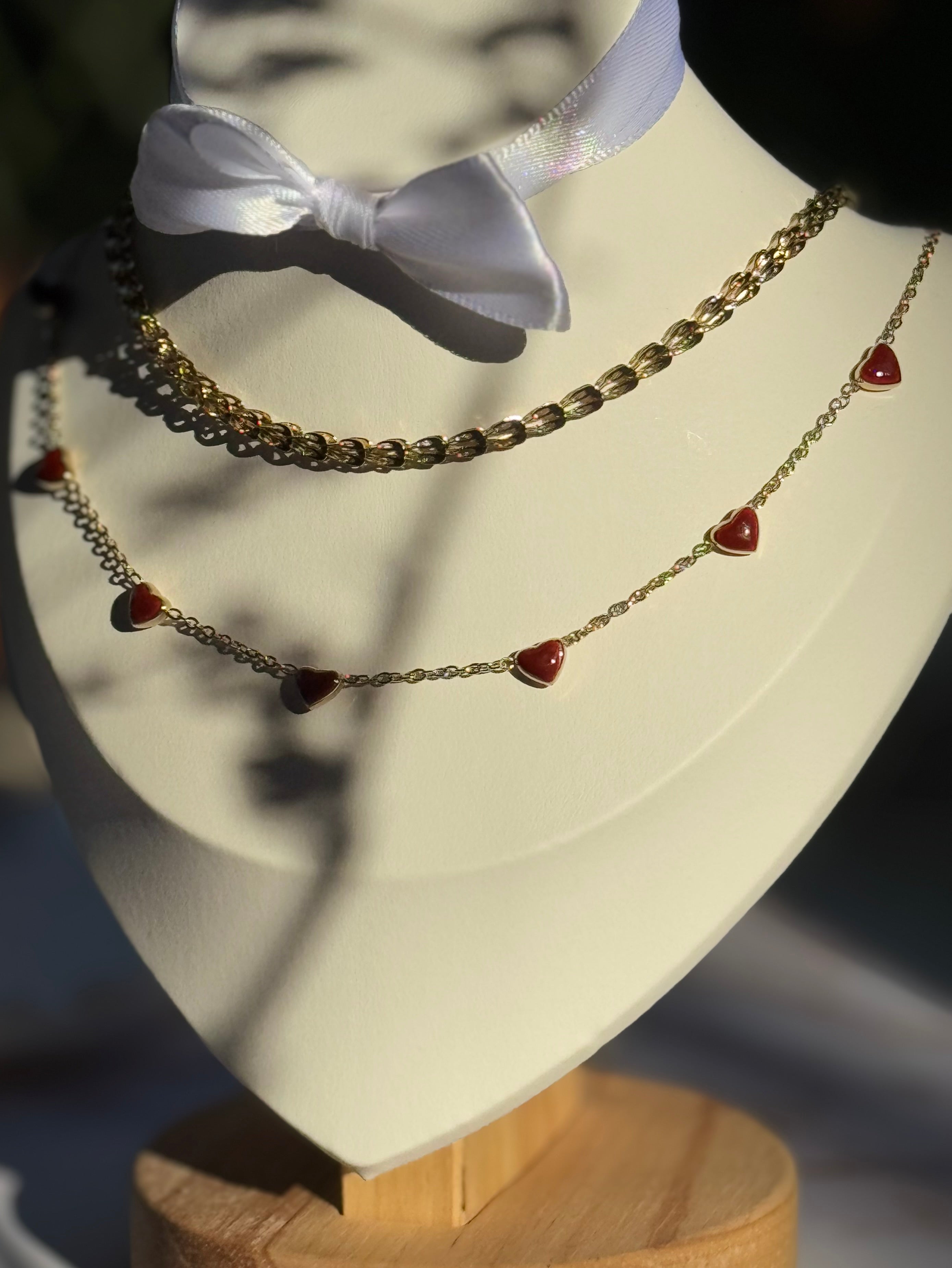 Collana Lovely Caratterizzata da un design giovane e vivace, arricchito da una serie di piccoli cuori smaltati distribuiti lungo la catena. I cuori hanno una finitura smaltata rossa, che aggiunge un tocco di colore e rende il gioiello accattivante e alla moda. La disposizione uniforme dei ciondoli a cuore crea un look armonioso e femminile, perfetto per chi ama esprimere il proprio lato romantico e giocoso. Ideale per essere indossata sia da sola sia abbinata ad altri gioielli.