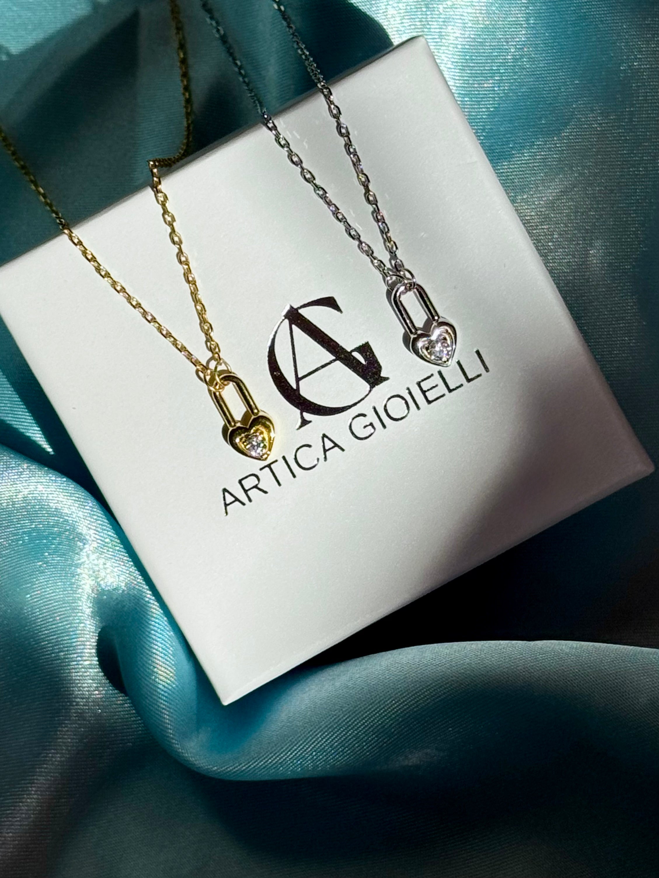 La collana Locket è realizzata in argento 925 con una placcatura in oro 18k o Rodio, presenta un delicato ciondolo a forma di lucchetto a cuore, simbolo di amore, protezione e legame eterno. Al centro, una brillante zirconia cubica 5A, dalla luminosità eccezionale, rifinisce il design con un tocco di eleganza.