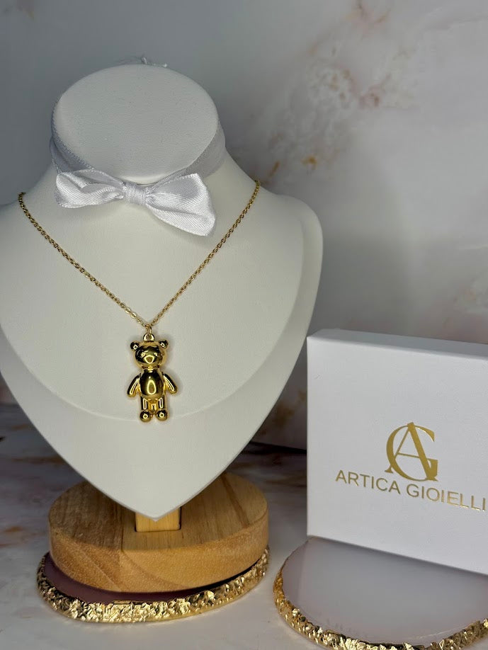 Il pendente orsetto evoca un senso di nostalgia e tenerezza, perfetto per chi cerca un gioiello con un simbolo dell'infanzia o semplicemente qualcosa di unico e spiritoso.
