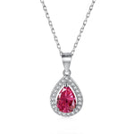 La collana Fleur è realizzata in argento 925 con luminosa zirconia cubica 5A di un vibrante rosa fucsia a goccia, incastonata in una raffinata cornice di zirconie scintillanti. Un gioiello delicato e femminile, perfetto per illuminare ogni occasione con discreta preziosità.
