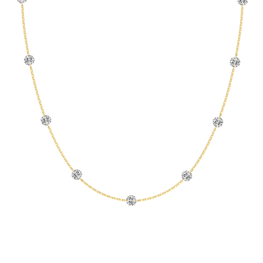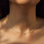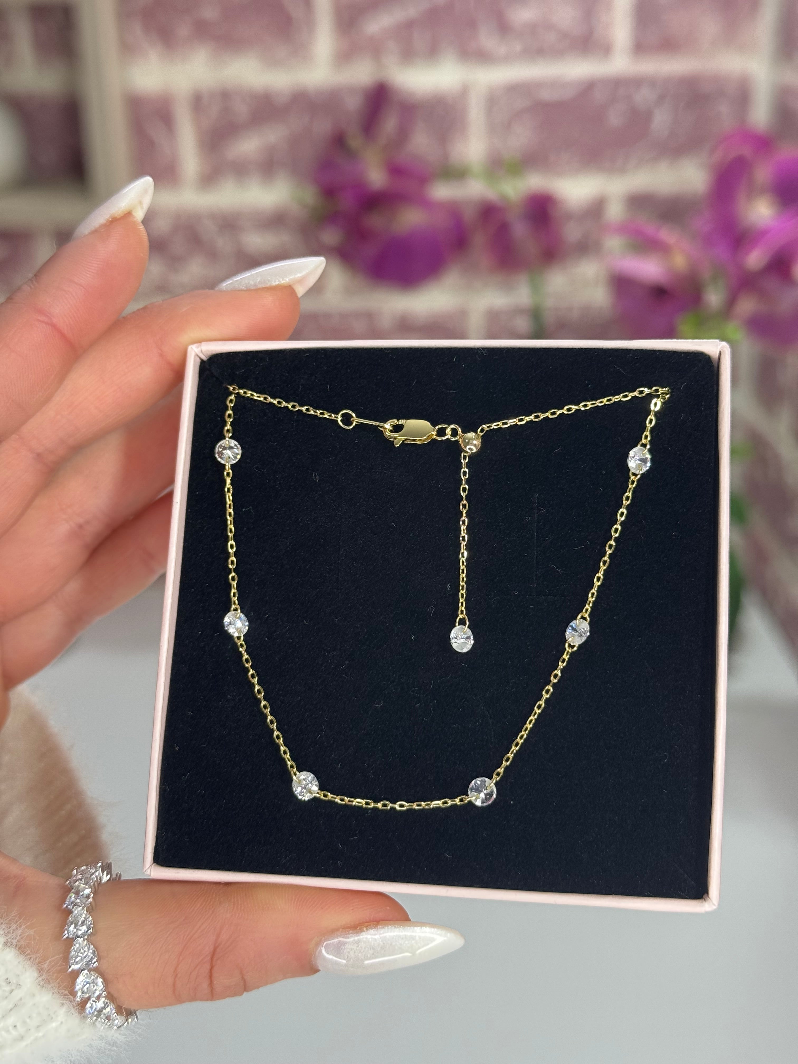 La collana Nyra è realizzata in argento 925 dal design minimal e raffinato, impreziosita da luminosi punti luce in zirconia cubica. La lunghezza è regolabile grazie al pratico cursore scorrevole, oltre al classico gancetto, per adattarsi facilmente a ogni scollatura e stile.