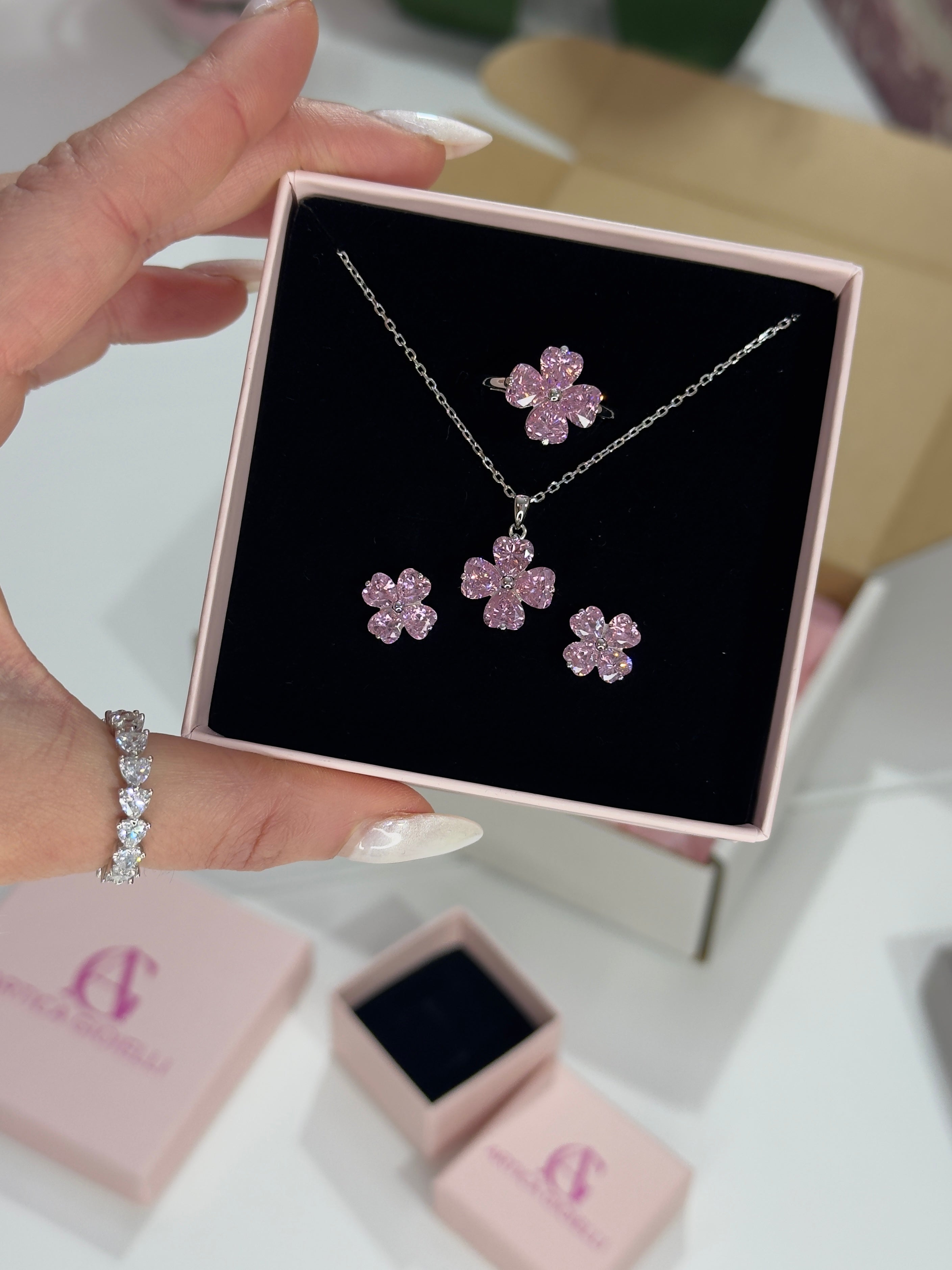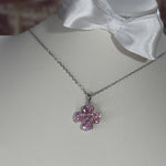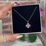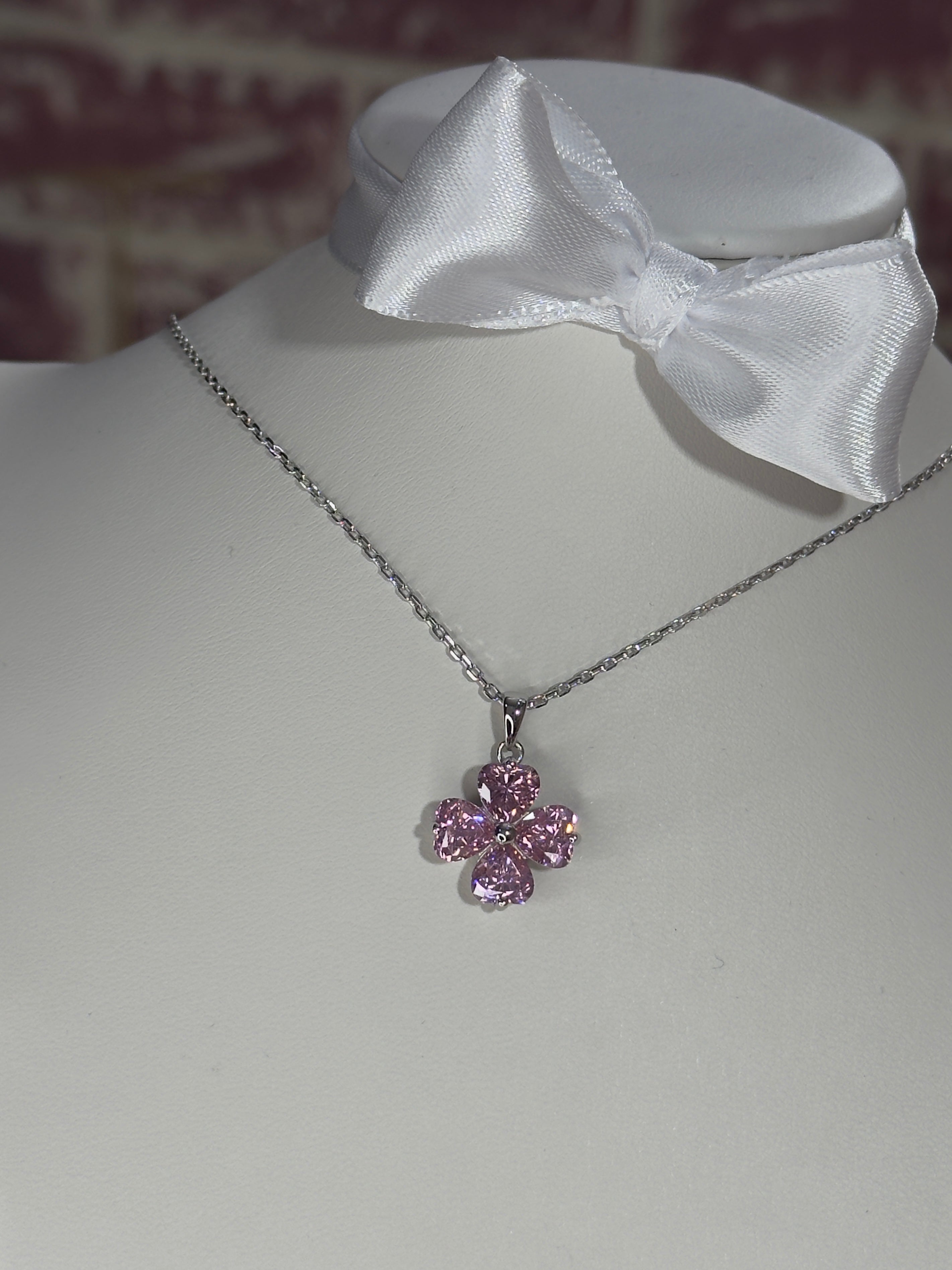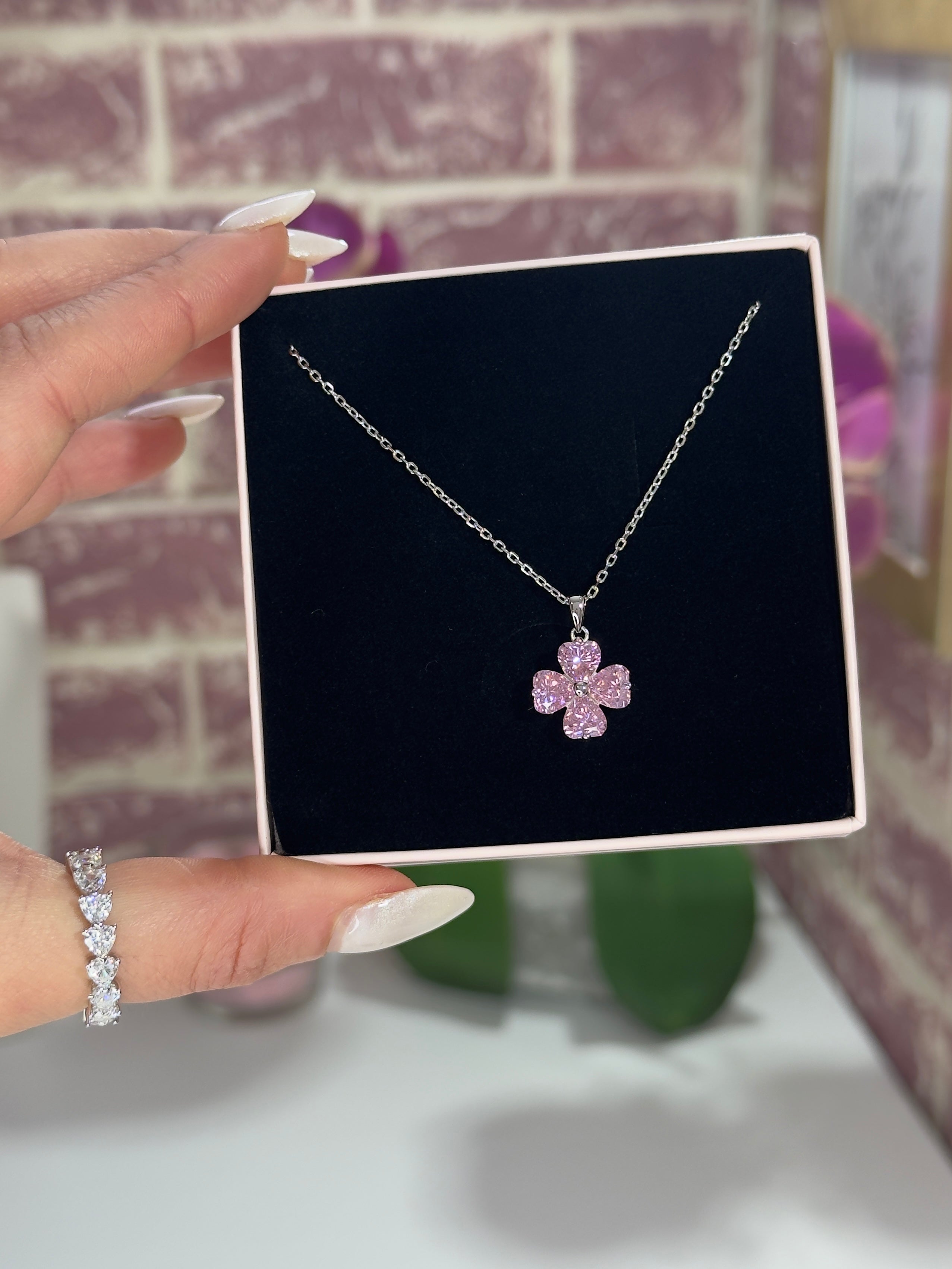 La collana Runa è realizzata in argento 925 con zirconia cubica 5A, un delicato fiore a quattro petali di un rosa luminoso e vibrante. Un gioiello romantico e femminile, perfetto per impreziosire la mano con dolce eleganza.