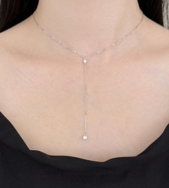 La collana Solis è realizzata in argento 925 con zirconia cubica 5A, un filo essenziale e luminoso che scivola con grazia sul décolleté,