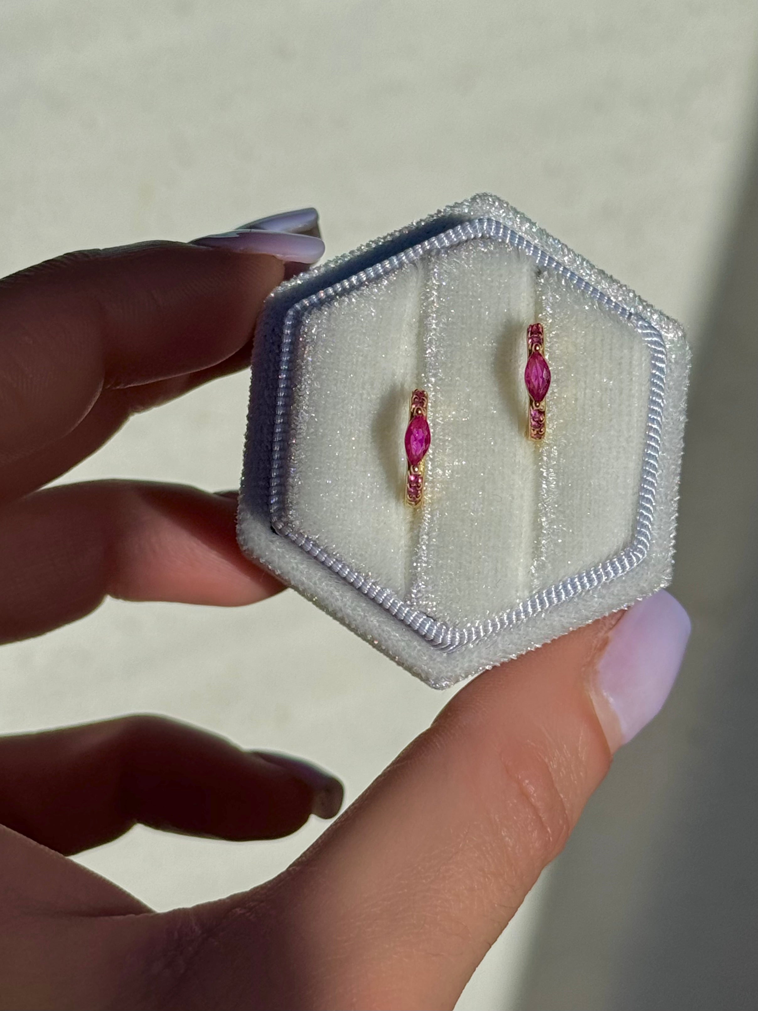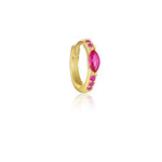 Orecchino cerchietto mini in argento 925 placcato oro presentano un design elegante e delicato, composto da pietre di zirconia rosa. Le pietre, dal colore intenso e brillante, sono incastonate con cura in una montatura sottile color oro, che dona un tocco raffinato e femminile al gioiello. Perfetti da indossare sia singolarmente che abbinati ad altri orecchini per un look più ricercato. Ideali per chi ama dettagli luminosi ma discreti.