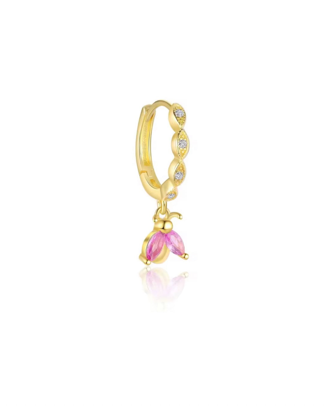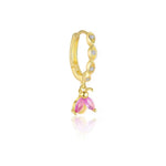 L’orecchino coccinella in argento 925 placcato oro presentano un design elegante e delicato, composto un cerchietto e pendente a coccinella con pietre di zirconia rosa.Le pietre, dal colore intenso e brillante, sono incastonate con cura in una montatura sottile color oro, che dona un tocco raffinato e femminile al gioiello. Perfetti da indossare sia singolarmente che abbinati ad altri orecchini per un look più ricercato.