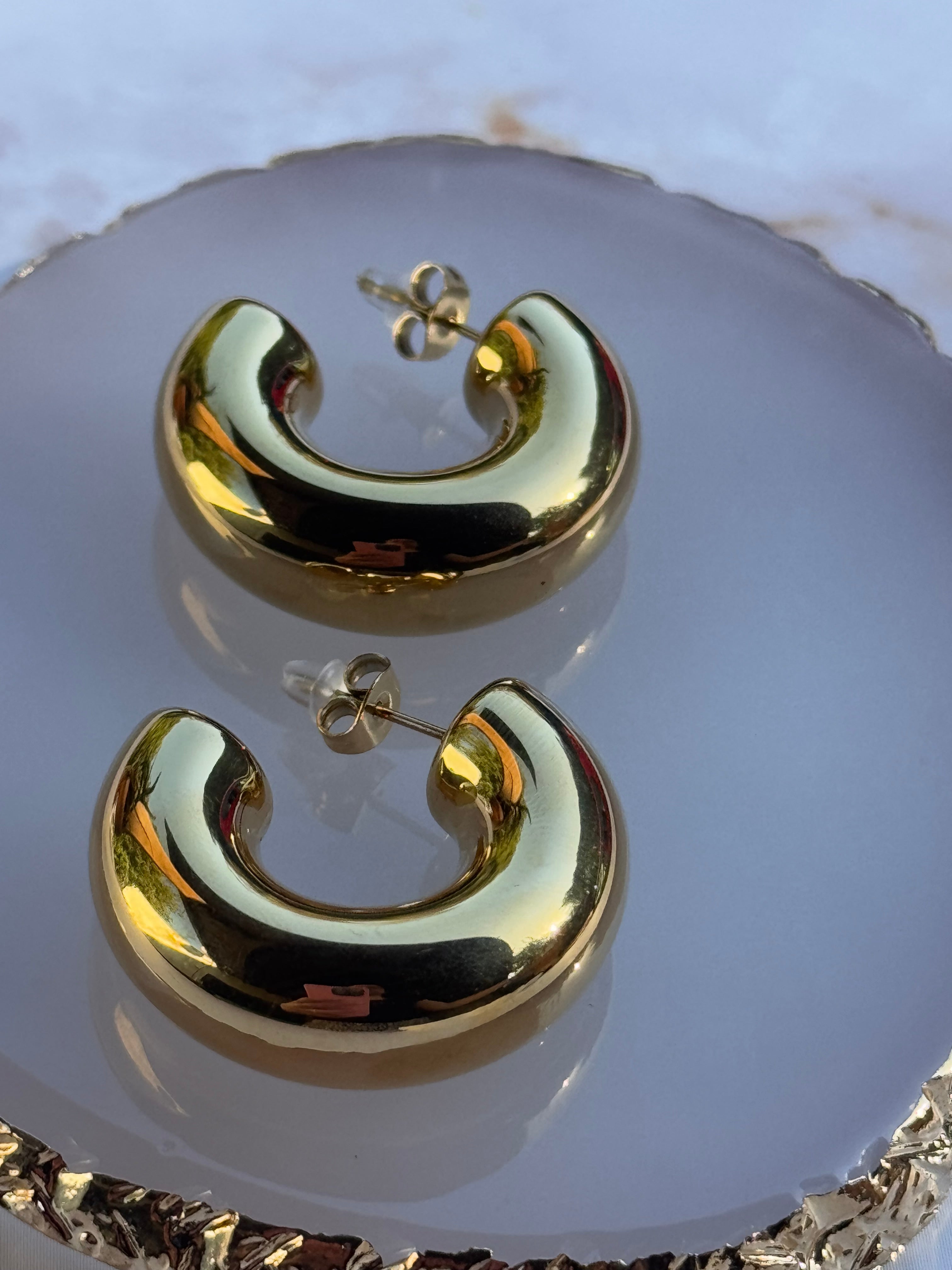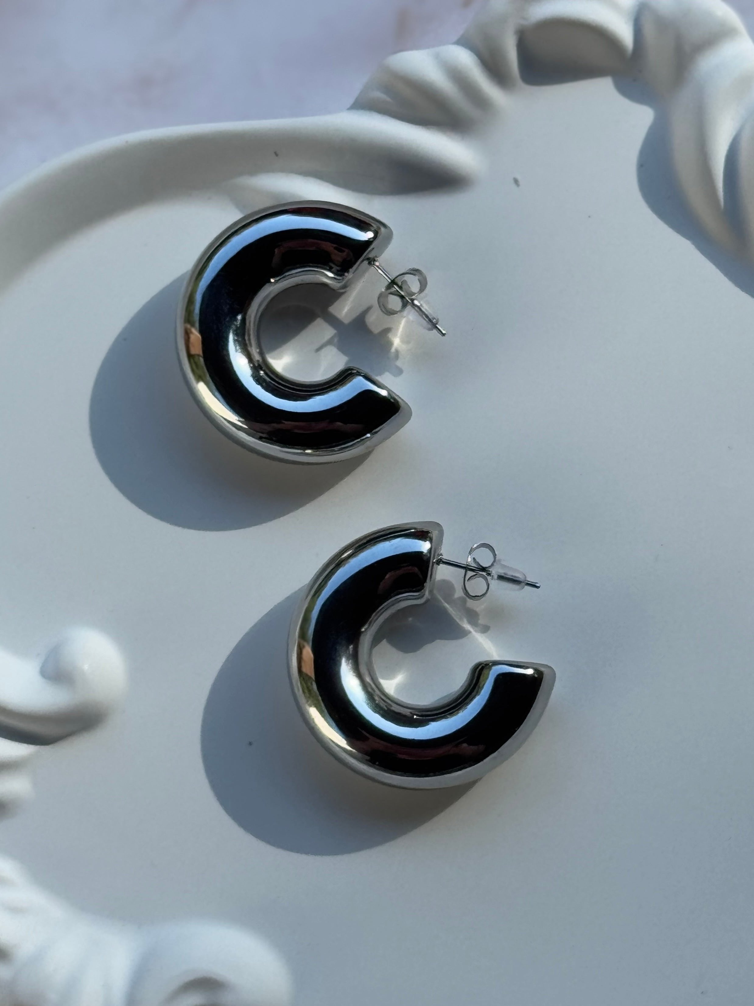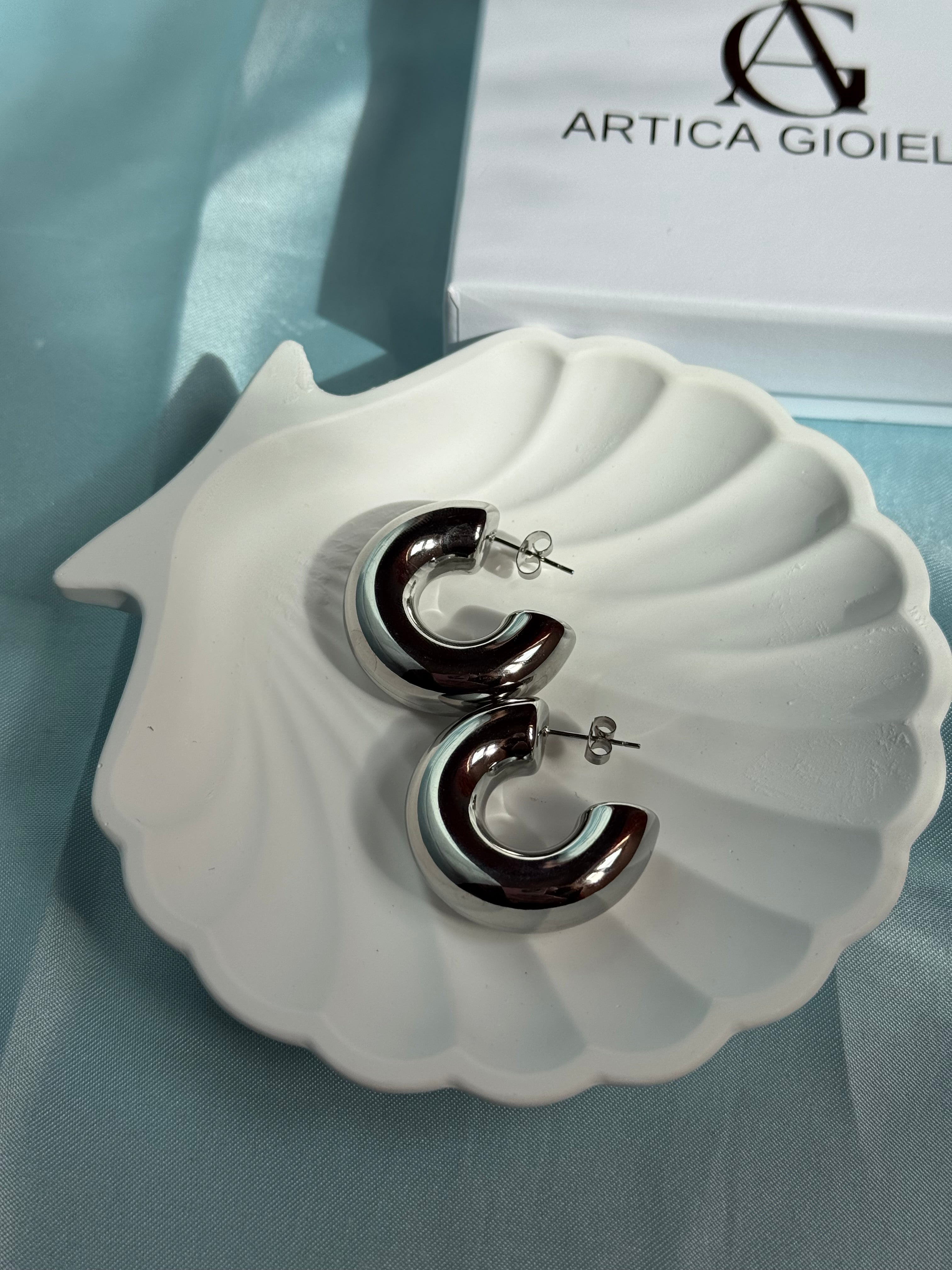 Gli orecchini Grace esprimono un’eleganza pura e minimalista, perfetta per chi apprezza il lusso discreto. Sono caratterizzati da una forma semicircolare a mezzaluna, piena e lucida, che dona un effetto voluminoso e sofisticato. La superficie è finemente lucidata, creando un riflesso morbido e avvolgente che cattura la luce e aggiunge profondità al design.