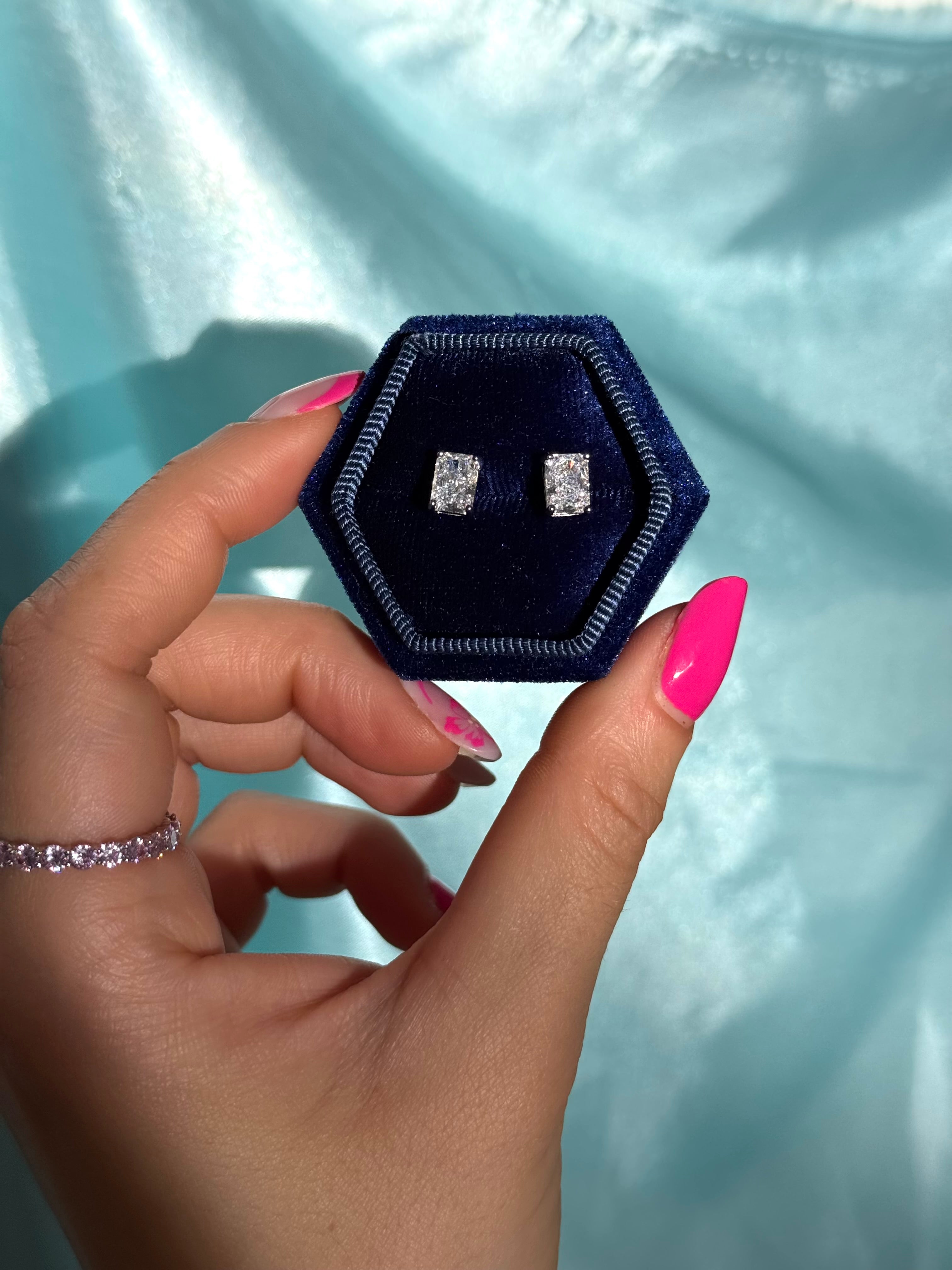 Gli orecchini Zahra a bottone realizzati in argento sterling 925, con zirconia cubica 5A taglio rettangolare incastonata con cura. La brillantezza della pietra e il design essenziale li rendono perfetti sia per l’uso quotidiano che per occasioni speciali.