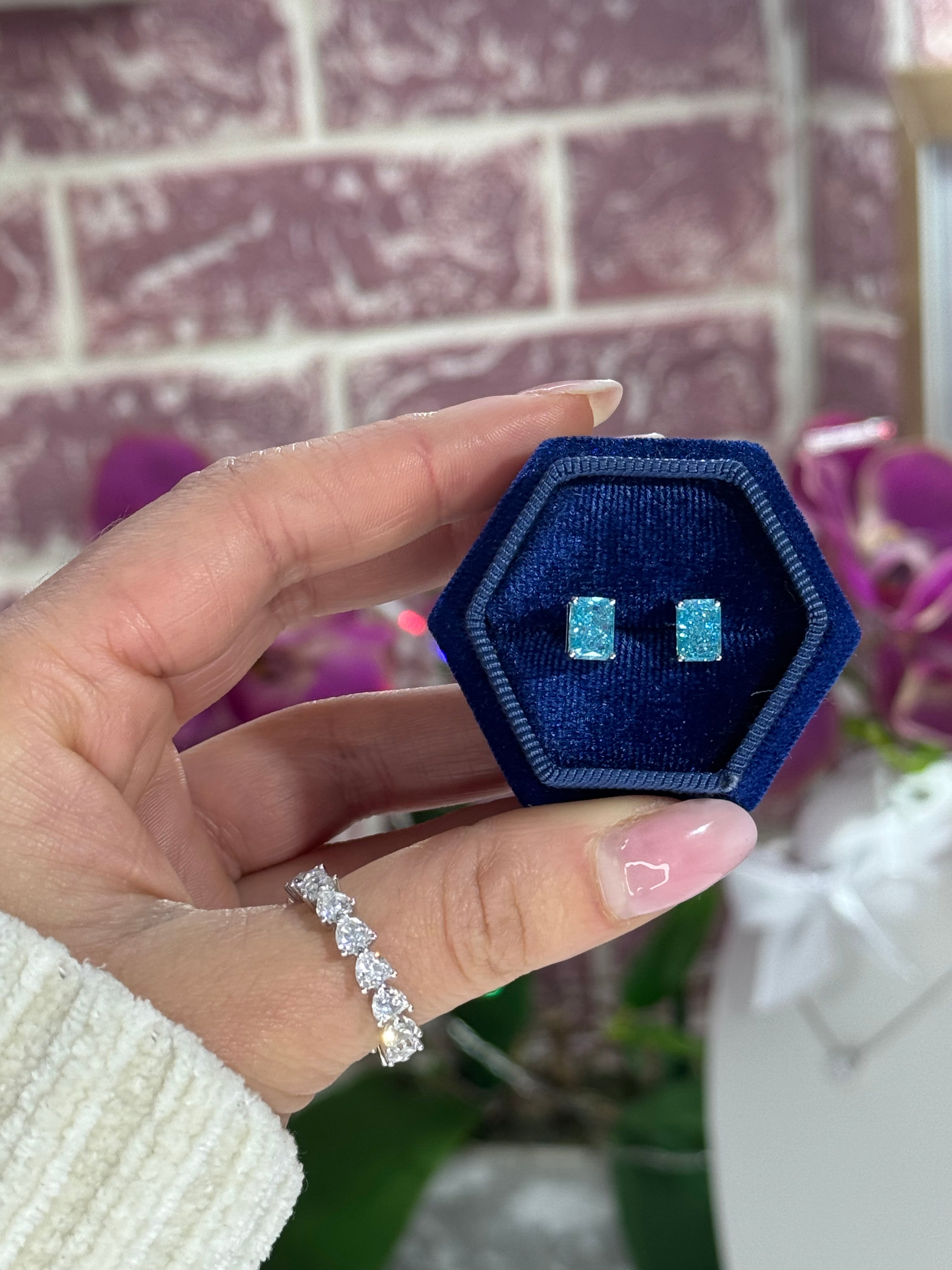 Gli orecchini Zahra sono realizzati in argento sterling 925 e impreziositi da una zirconia cubica 5A dal taglio rettangolare, incastonata con precisione. La luminosità della pietra, unita al design essenziale, li rende perfetti sia per l’uso quotidiano che per le occasioni speciali.