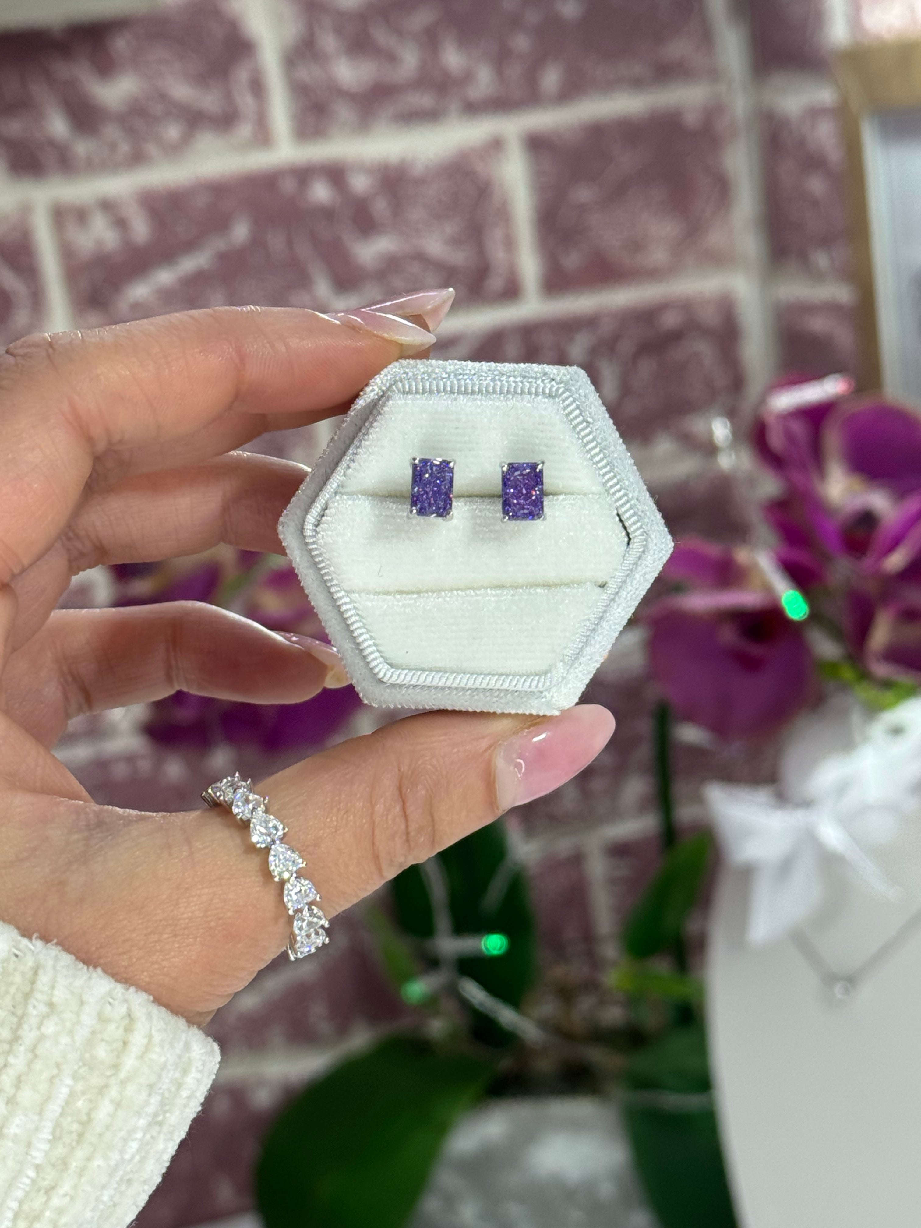 Gli orecchini Zahra sono realizzati in argento sterling 925 e impreziositi da una zirconia cubica 5A dal taglio rettangolare, incastonata con precisione. La luminosità della pietra, unita al design essenziale, li rende perfetti sia per l’uso quotidiano che per le occasioni speciali.