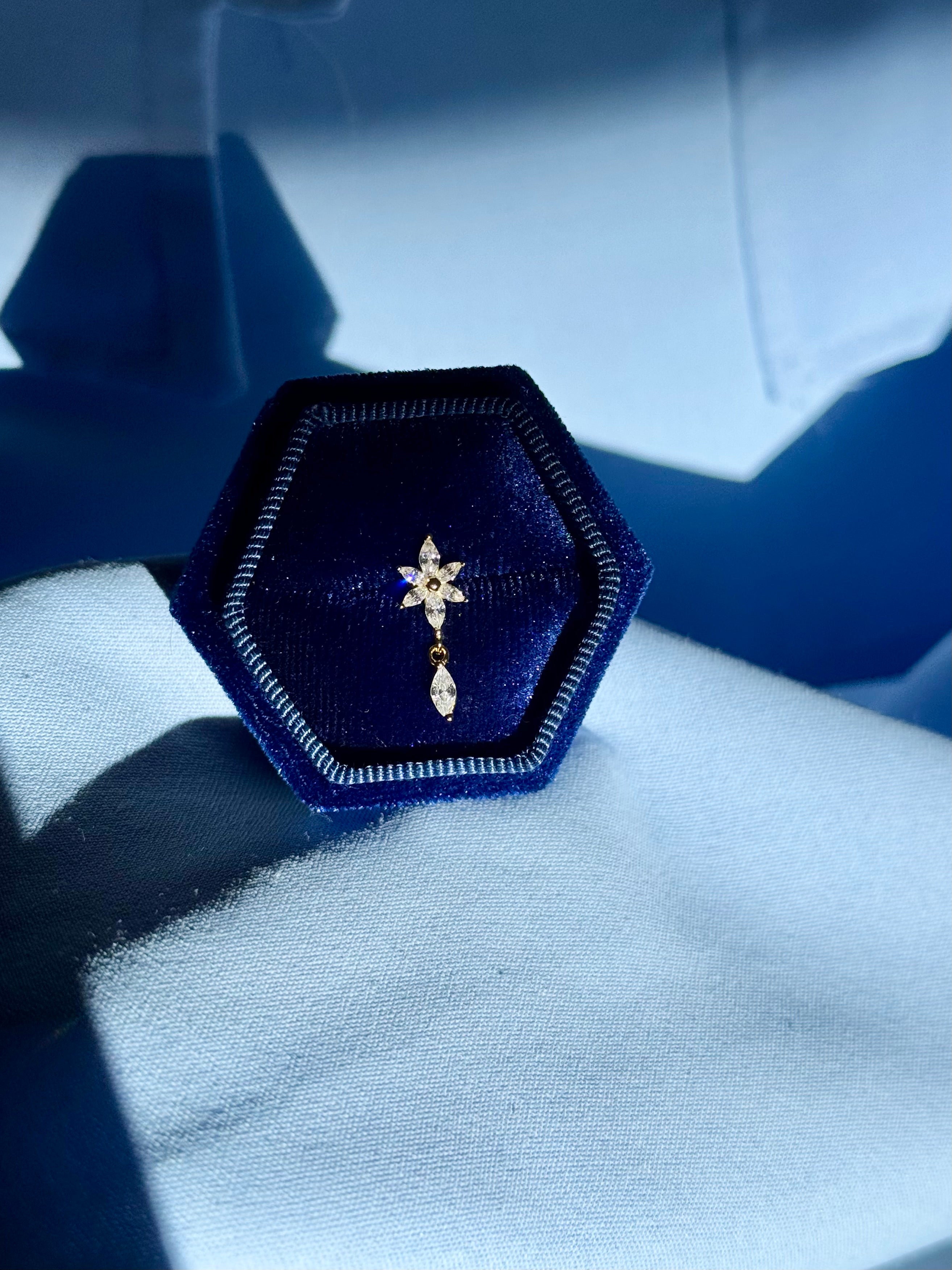 Orecchino Star singolo in argento 925 con zirconia cubica, impreziosito da un piccolo pendente per un tocco raffinato e luminoso.