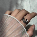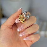 The Harper ring has a unique and modern design, characterized by a sinuous and abstract shape that recalls a stylized pattern of waves or soft curves. Available in gold and silver finishes, both rings have a smooth and shiny surface that reflects the light, accentuating the elegant and fluid lines of the design. Their open structure allows for easy adjustment of size, making them comfortable and versatile for any finger.
