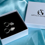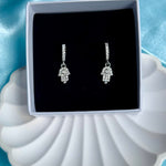 Eleganti orecchini a cerchietto in acciaio inossidabile, arricchiti da una fila di pietre di zirconia e un pendente a forma di Mano di Fatima. Un simbolo di protezione e stile, perfetto da indossare ogni giorno o per aggiungere un tocco spiritual-chic al tuo look.