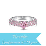 Un anello romantico e luminoso, caratterizzato da una brillante zirconia cubica a forma di cuore che cattura la luce ad ogni movimento. Il design è impreziosito da una fascia di piccoli zirconi che ne esaltano la lucentezza, creando un effetto sofisticato e senza tempo.