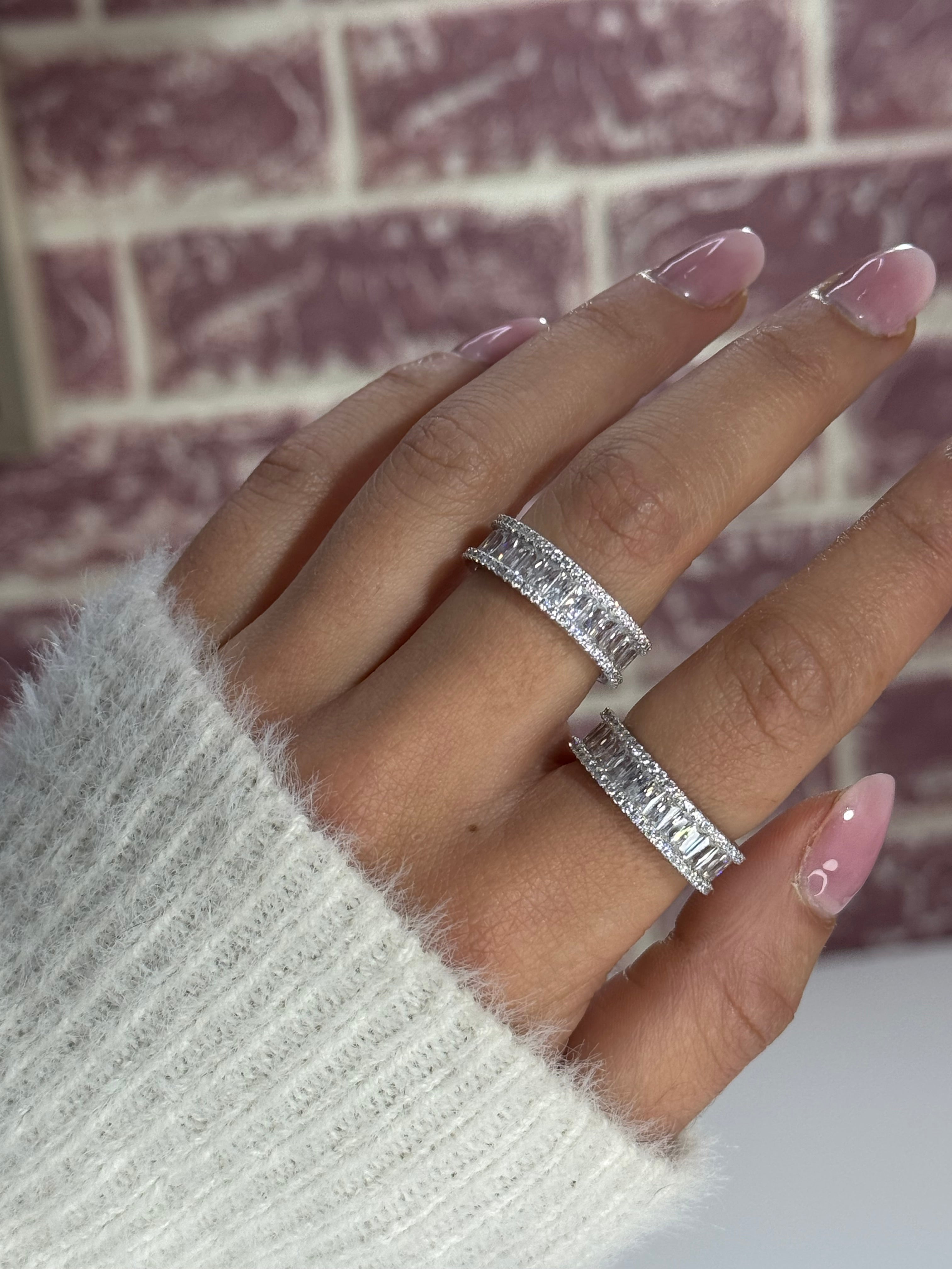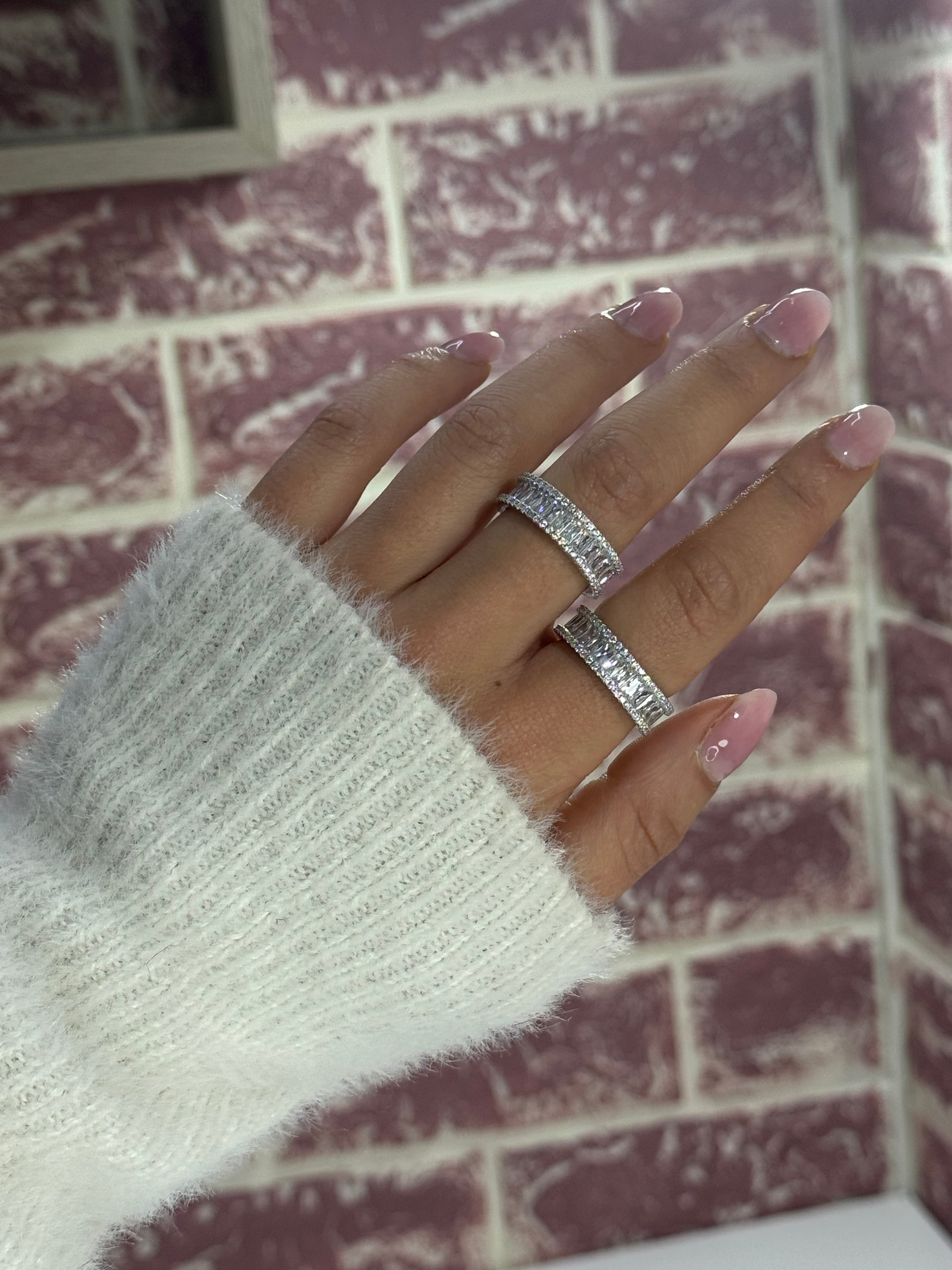 L'anello Alia è realizzato in argento sterling 925, impreziosito da zirconie cubiche 5A accuratamente incastonate. Le pietre catturano la luce da ogni angolazione, creando un effetto brillante e luminoso lungo tutta la fascia. Un gioiello raffinato e versatile, pensato per chi cerca qualità e stile senza tempo.