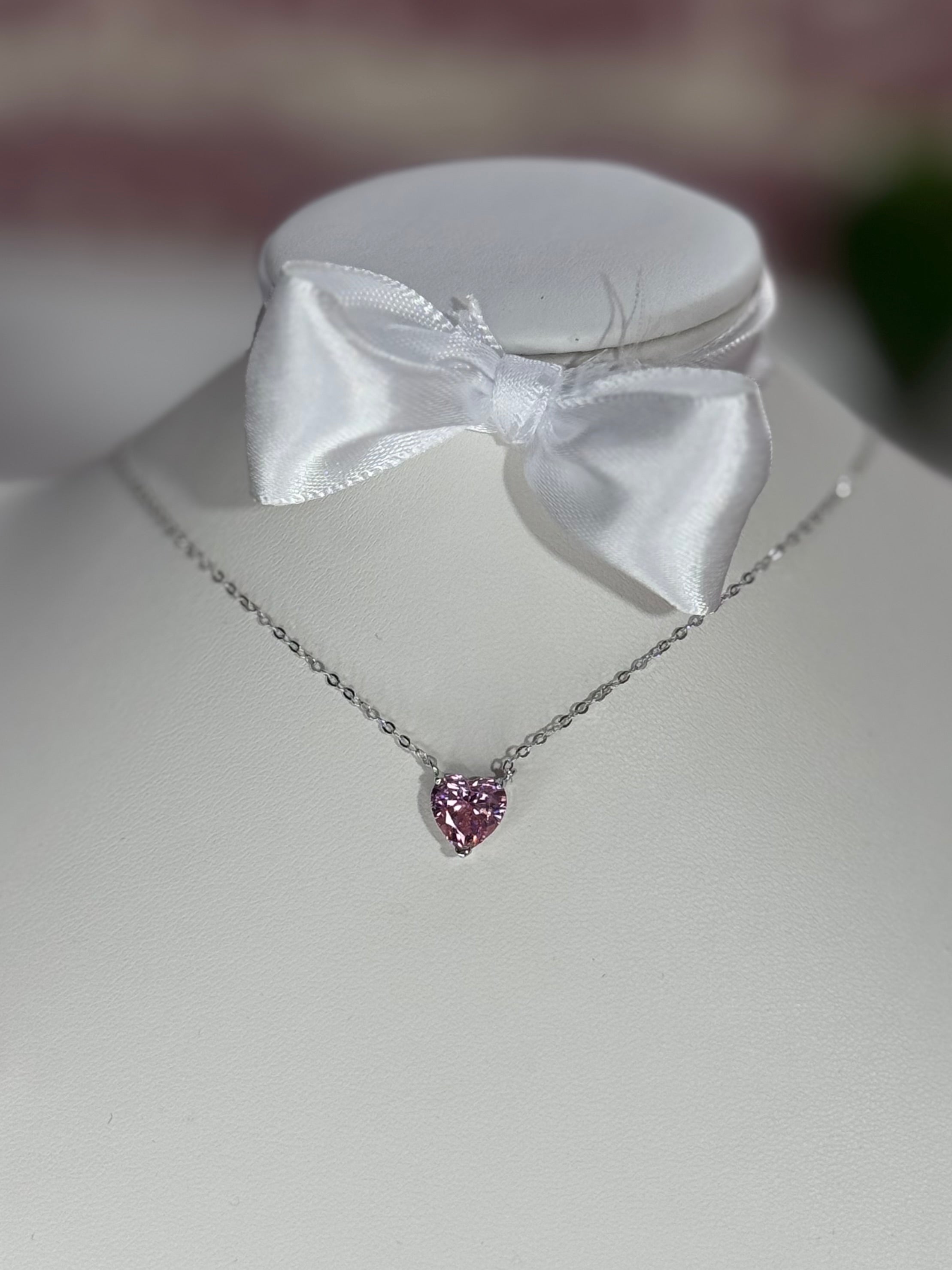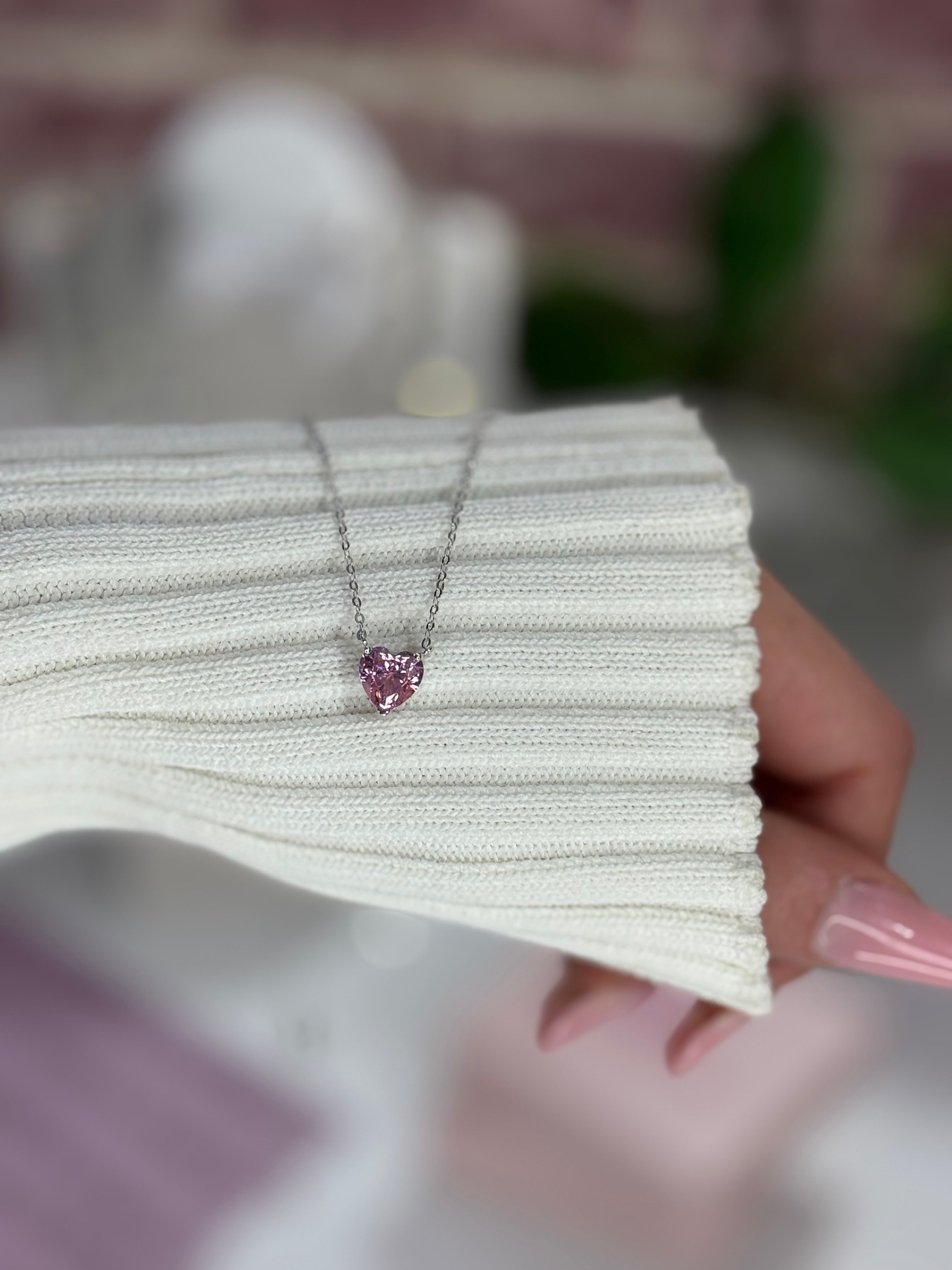 Disponibile in due colori: Rosa e Bianco. Design minimalista e luminoso, catena fine inclusa. Perfetta per un regalo romantico.