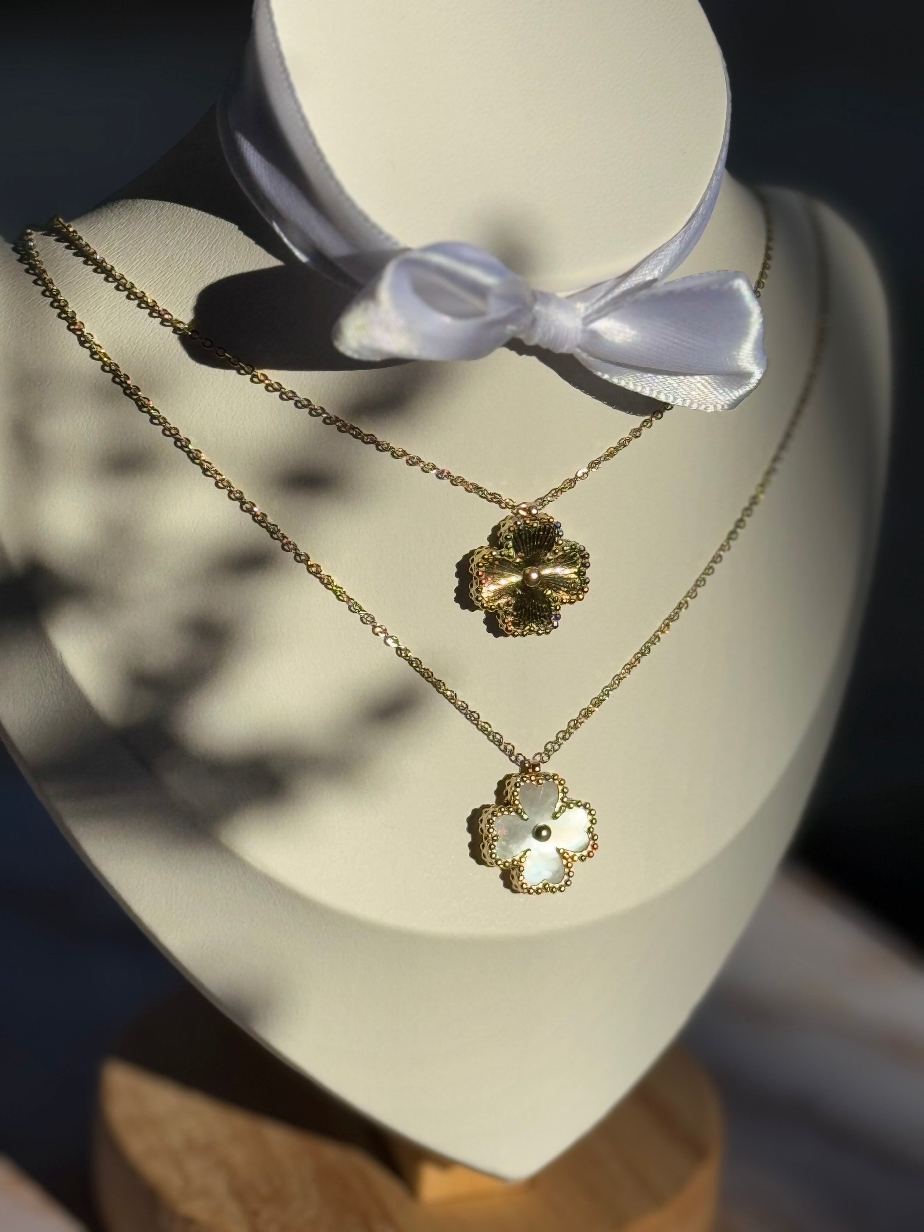 La collana Marilyn elegante e raffinata, realizzata in acciaio inossidabile senza nichel, perfetta per chi ha la pelle sensibile. Il pendente è a forma di fiore con dettagli delicati e una finitura in madreperla che aggiunge un tocco di luminosità e bellezza. La cornice dorata intorno al fiore esalta la lucentezza della madreperla, creando un look sofisticato e armonioso. Questo design è ideale per chi cerca un accessorio versatile, adatto sia a occasioni speciali sia a un tocco di eleganza quotidiana.