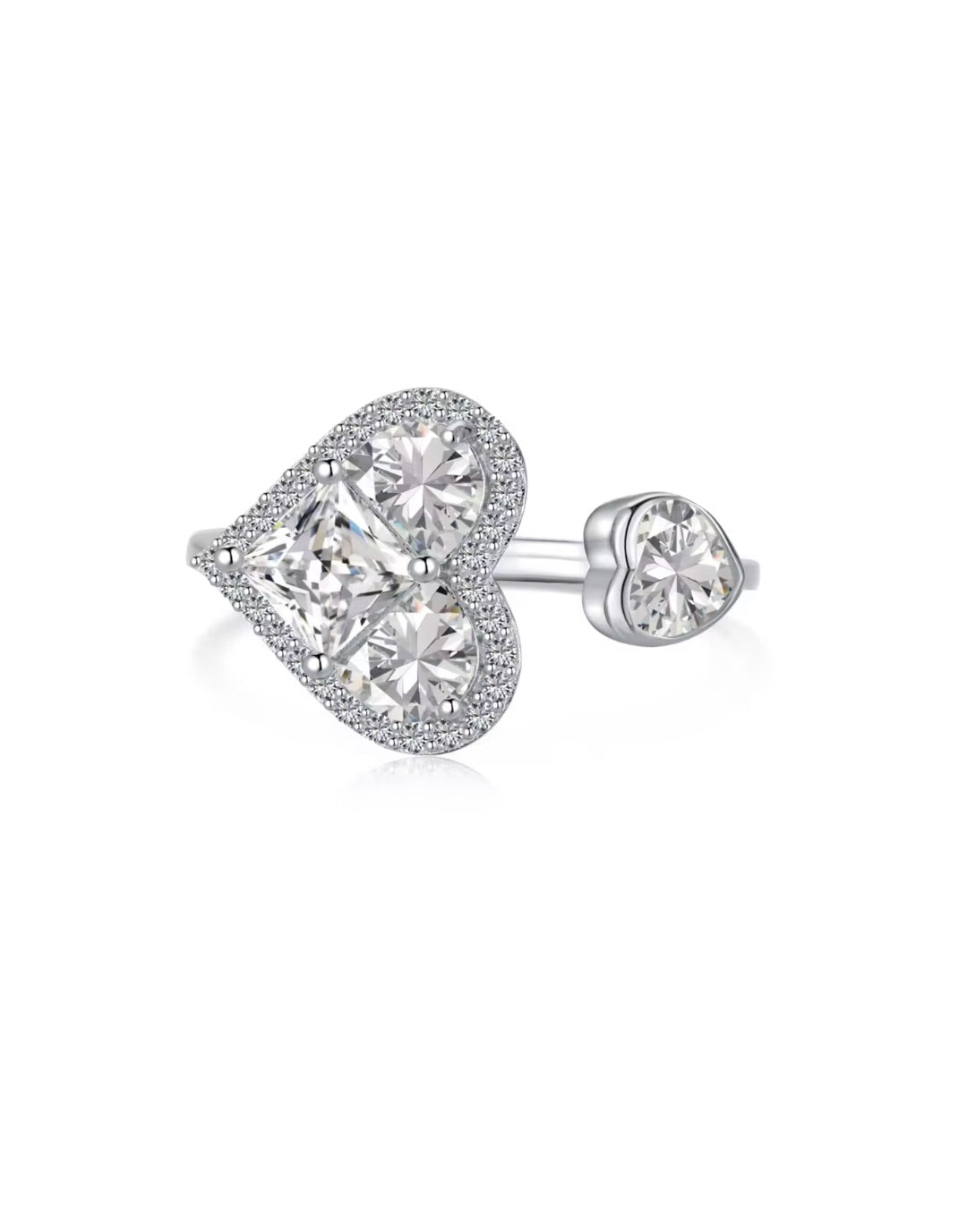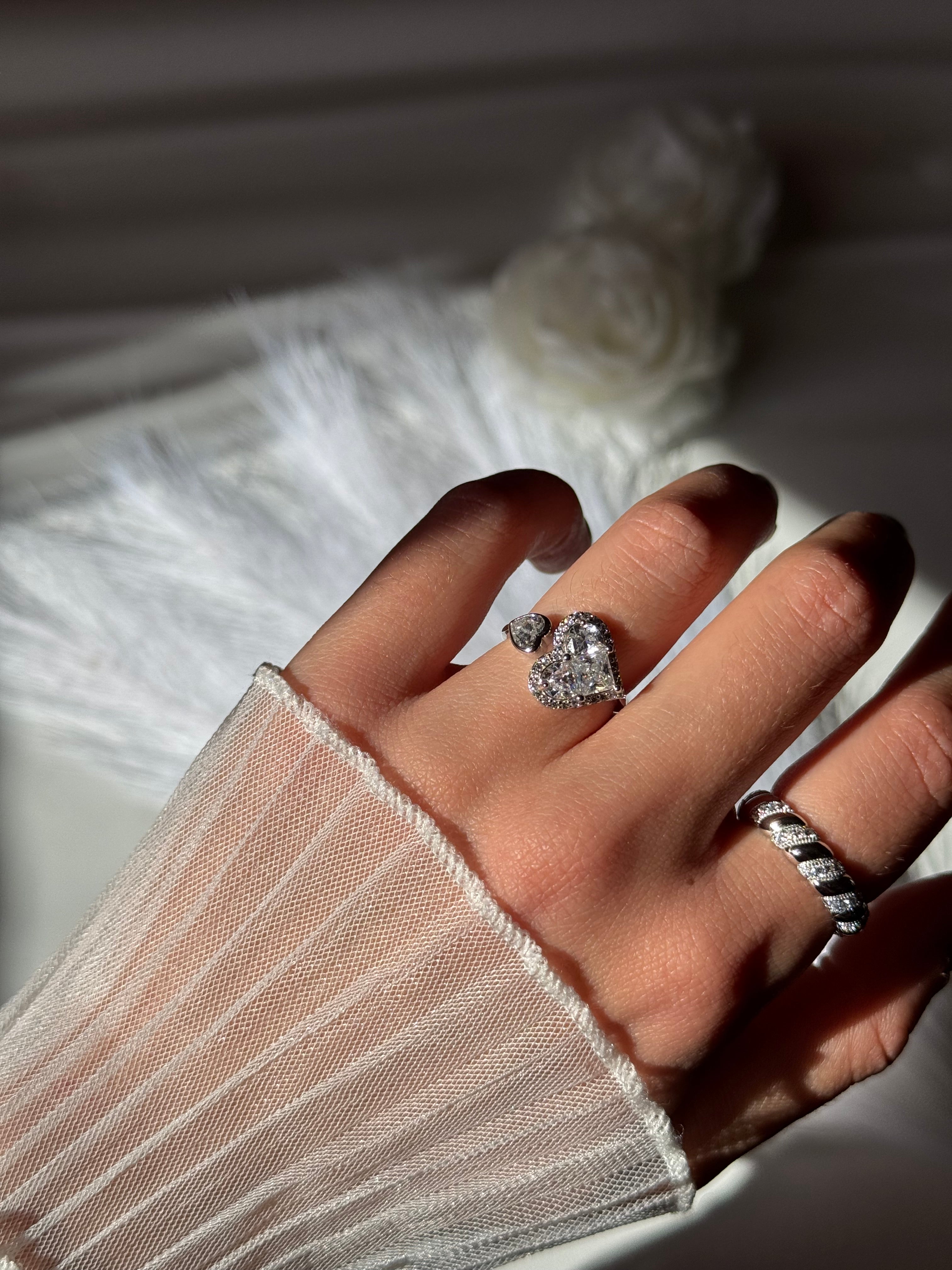 L'anello Love regolabile dal design romantico e luminoso, impreziosito da zirconia cubica 5A taglio brillante che formano un cuore elegante. Perfetto per aggiungere un tocco di luce e raffinatezza a ogni look.